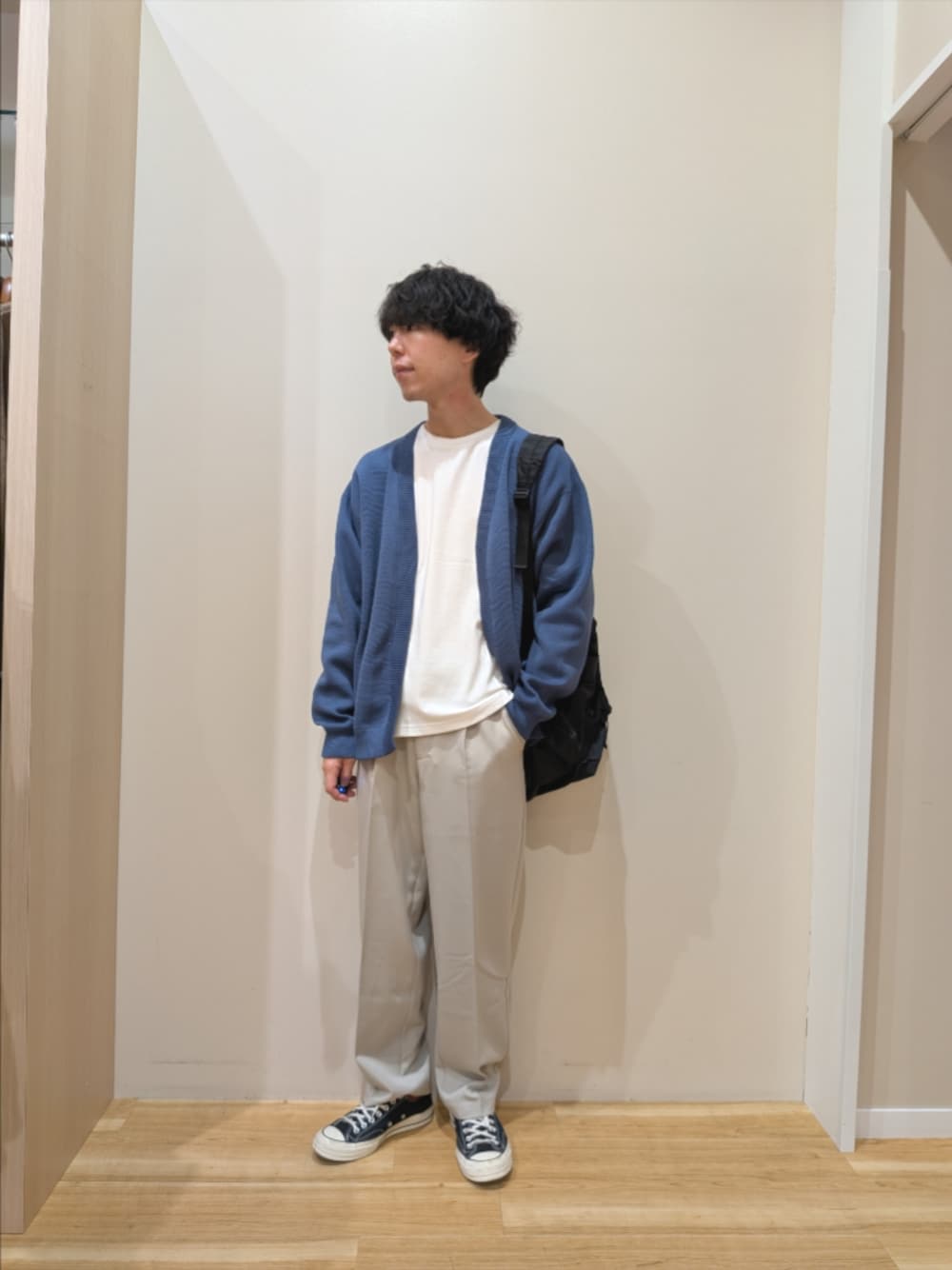 落ち着いた配色で、大人カジュアルにまとまるコーデです。