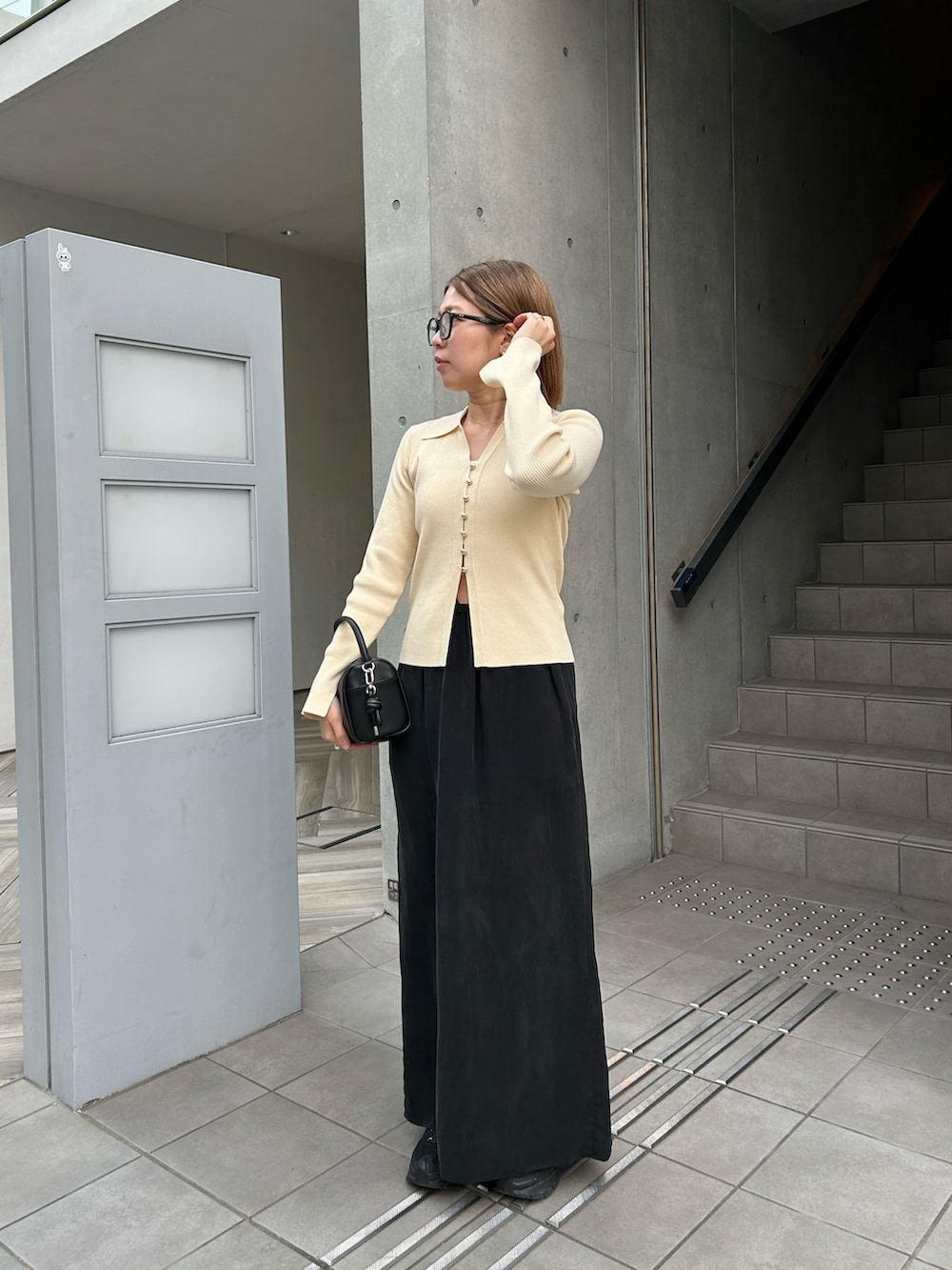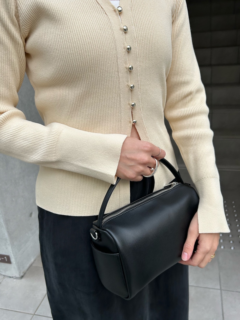 リングもバッグもシルバーで統一感💍