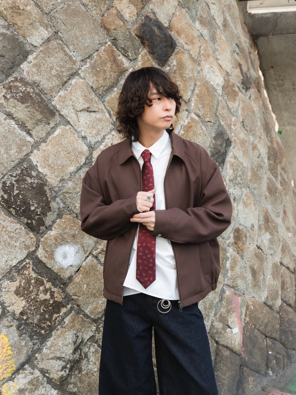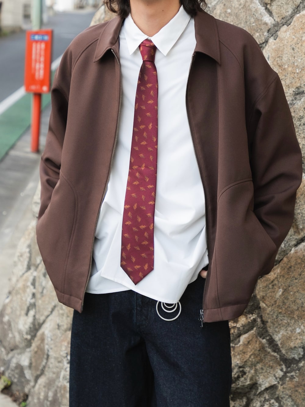 ブラウンに小物でレッド