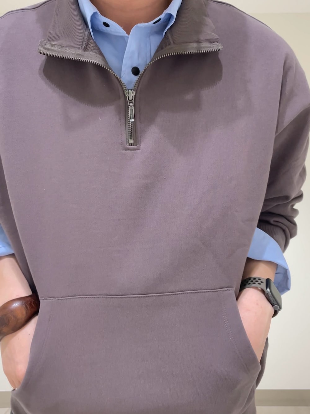 SENSE OF PLACEのSkin Proofハーフジップスウェットは防花粉・撥水機能付きで花粉対策や急な天候変化まで対応できるアイテムになっています✨️