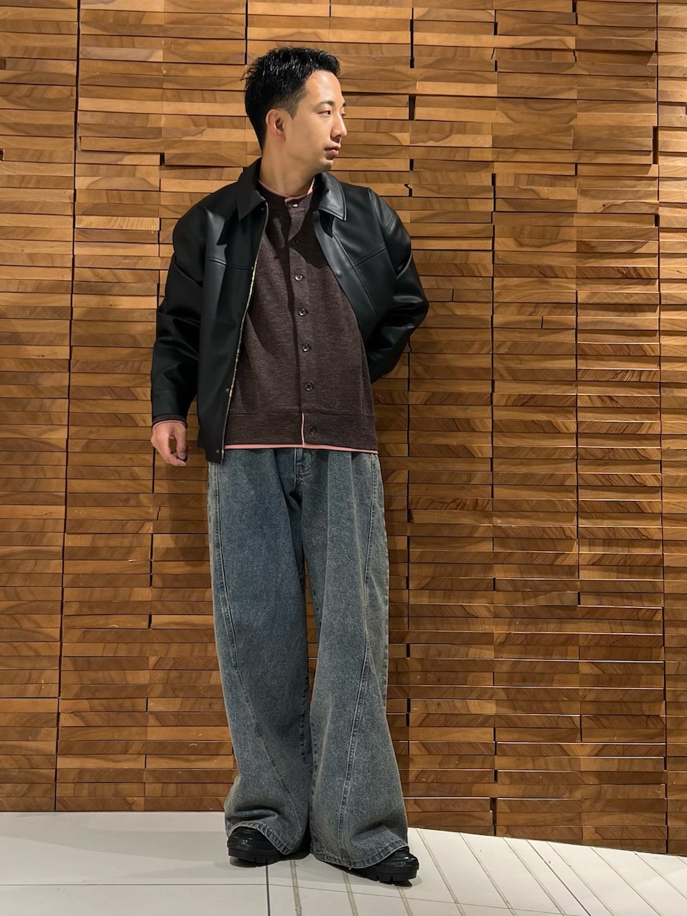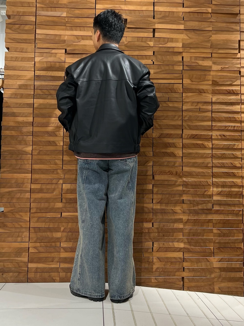 デニムは、足元に溜めたスタイリングにしたかったので、Lサイズにしてます!