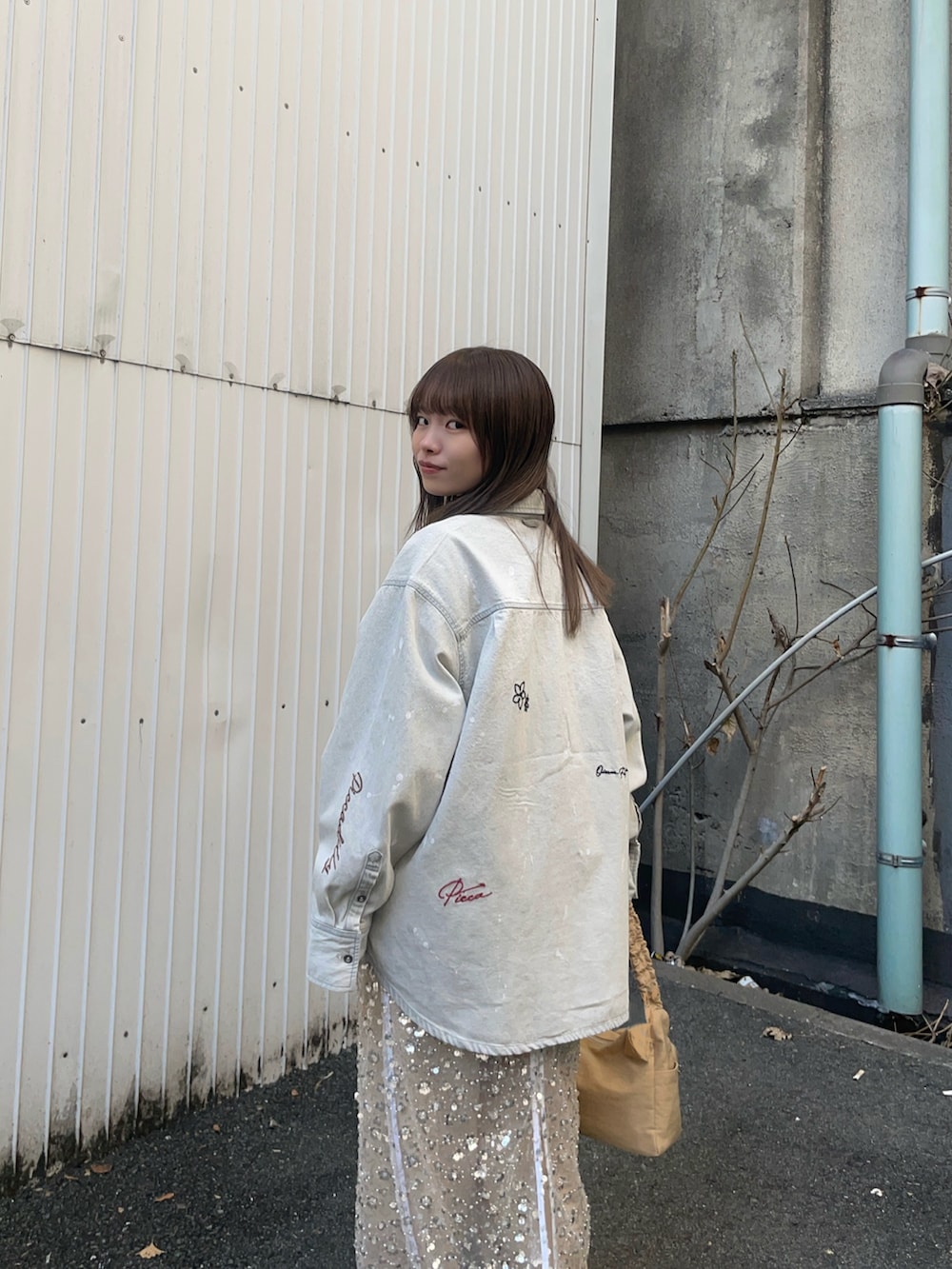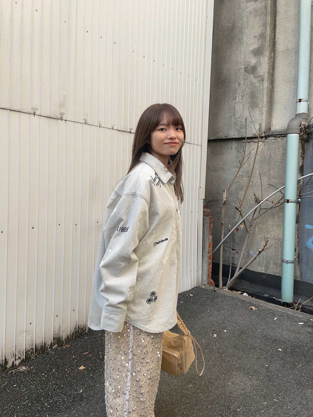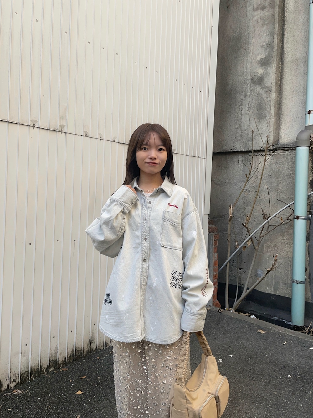 トップスはPICCADILLYとの別注アイテムで、刺繍入りのデニムシャツです!同素材の刺繍入りデニムパンツと、無地タイプもありセットアップとしてお使いいただけます✨さらっと着やすく、春の羽織にオススメですよ〜♪中はレースと重ね着しました!