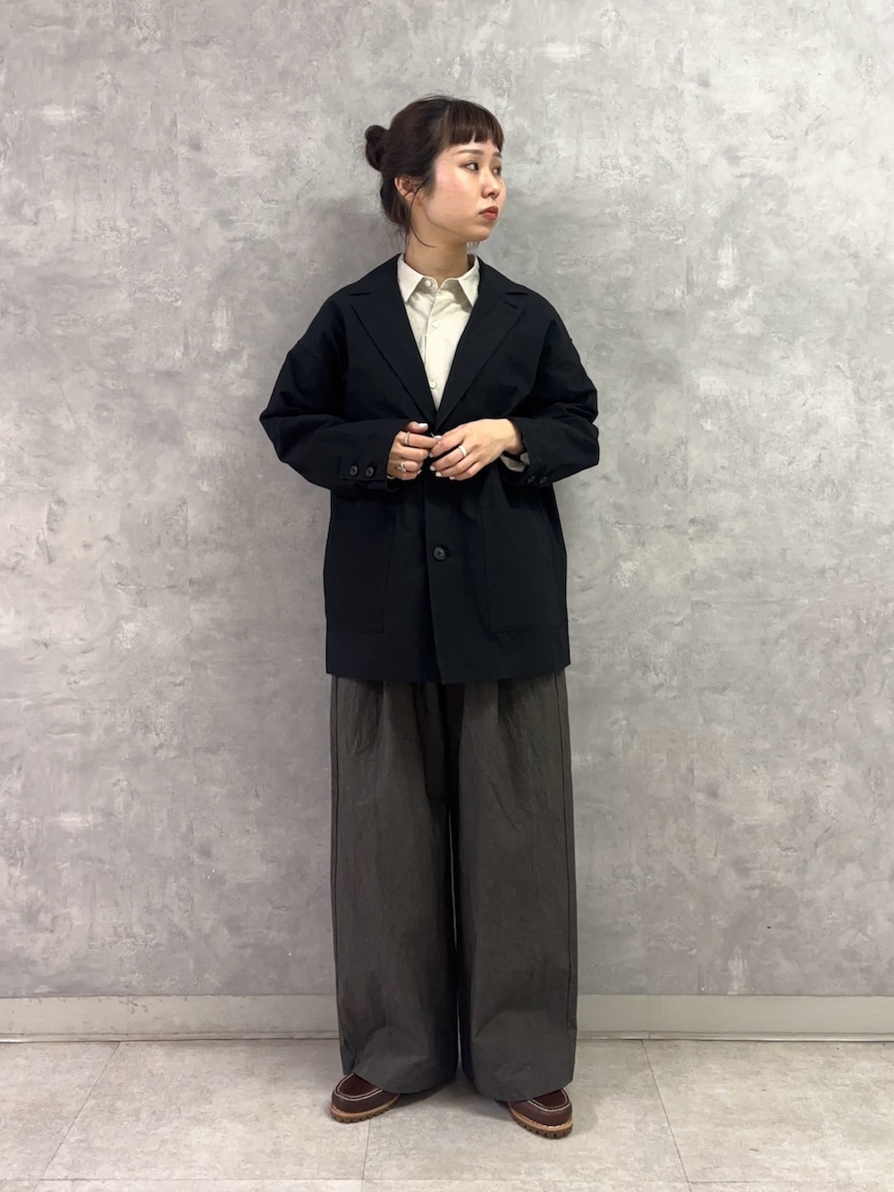 奥行きがあり、春でも重い印象になりにくい合わせです⭐︎