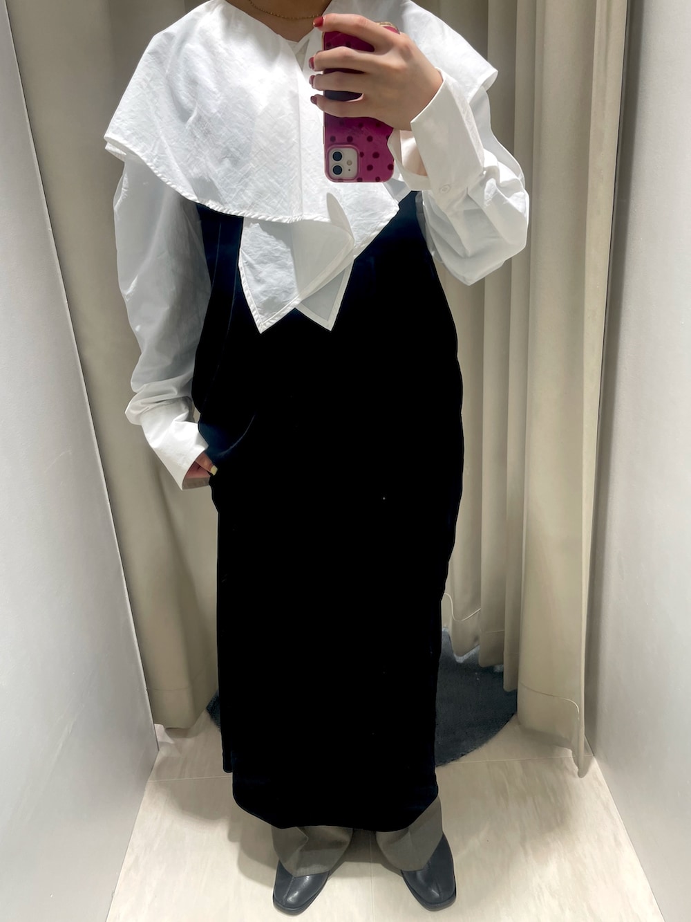 ベロアワンピースで合わせてシックに大人っぽい印象に✨