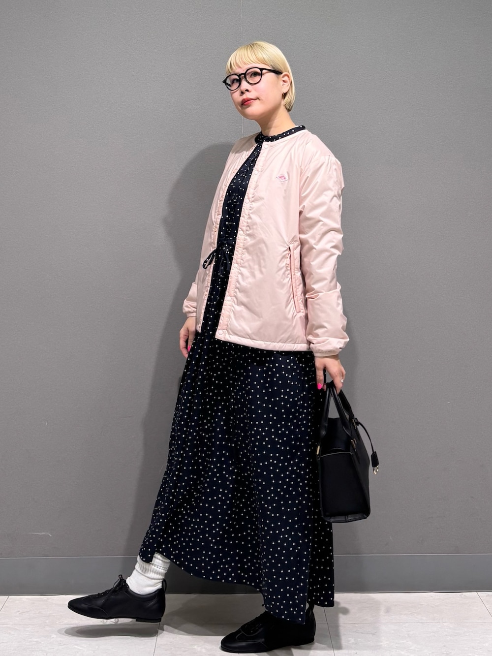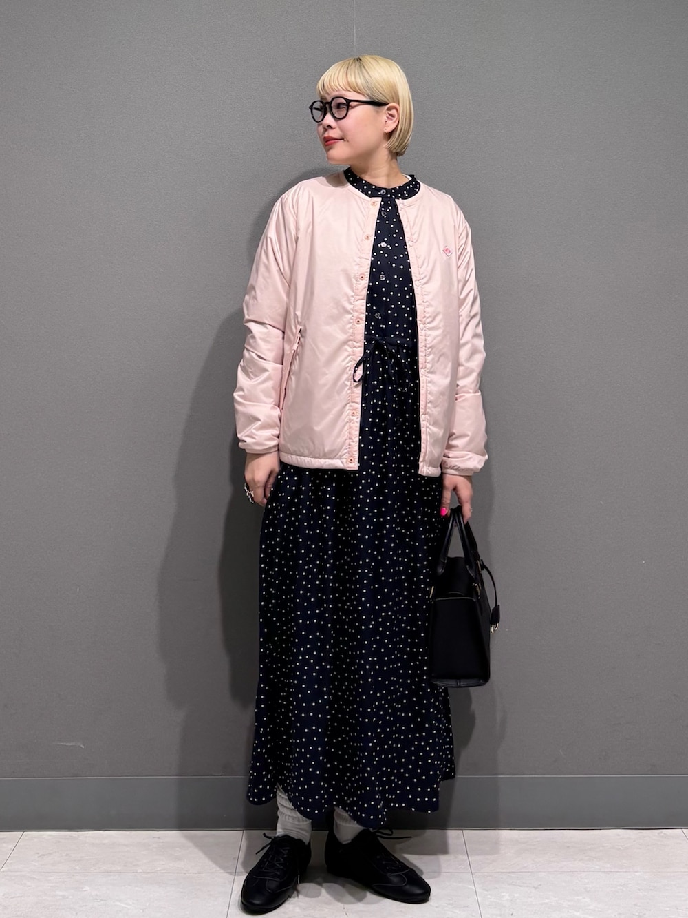 ドット柄のワンピースで