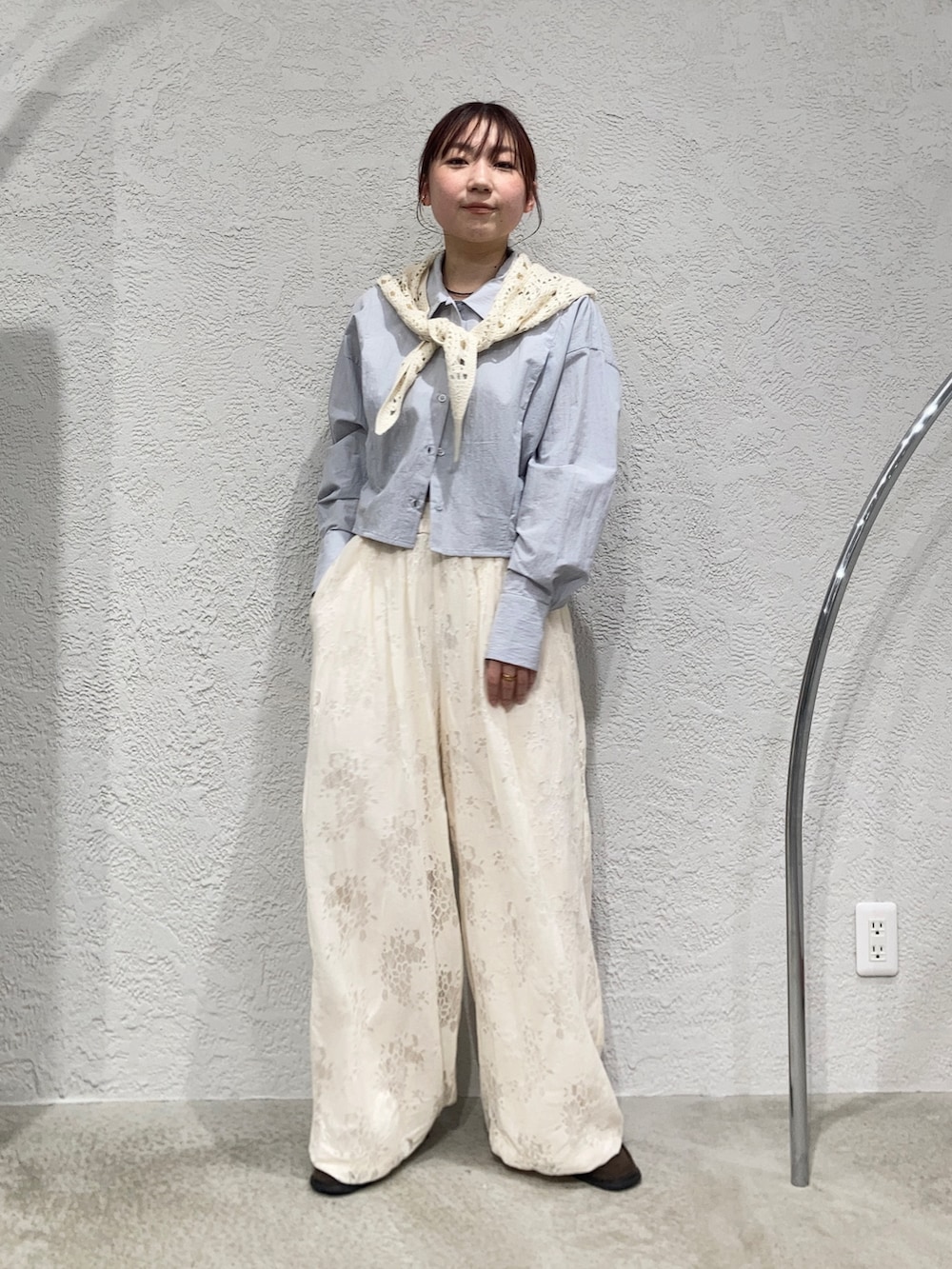 短丈シャツ×ふわっとシルエットのパンツはいつでもかわいい組み合わせでお気に入りです✨