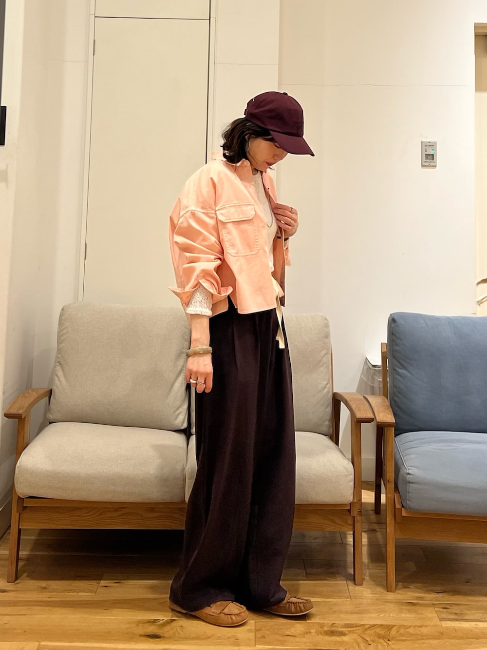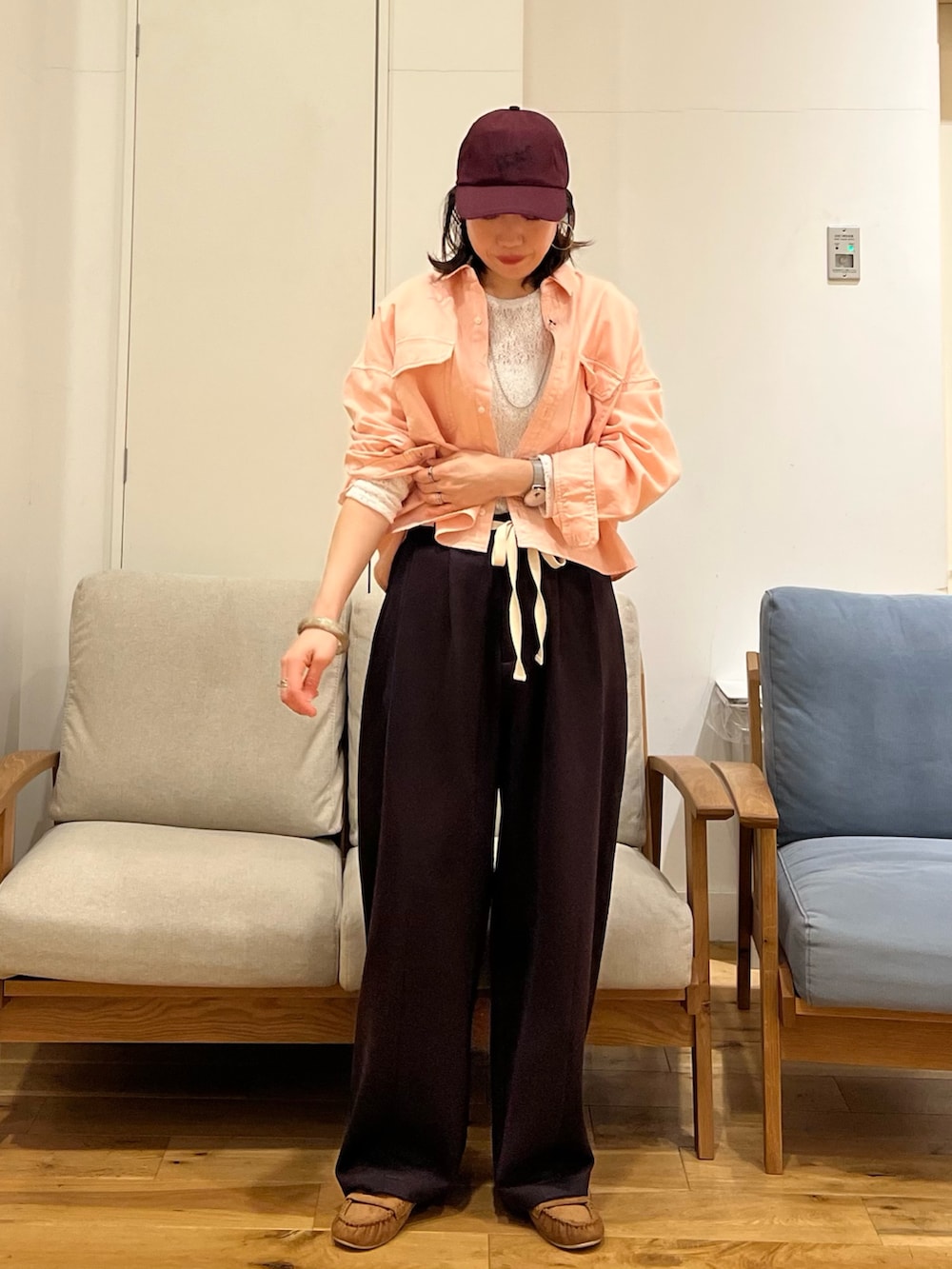 と、いうことで入荷したばかりのピンクのショート丈シャツでコーディネートしました♪♪