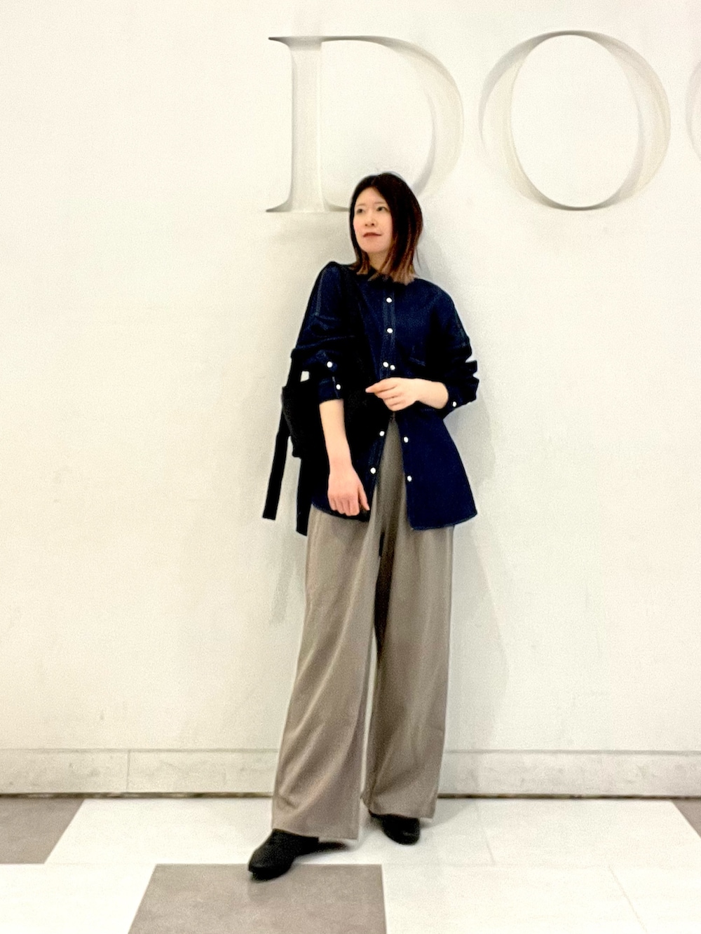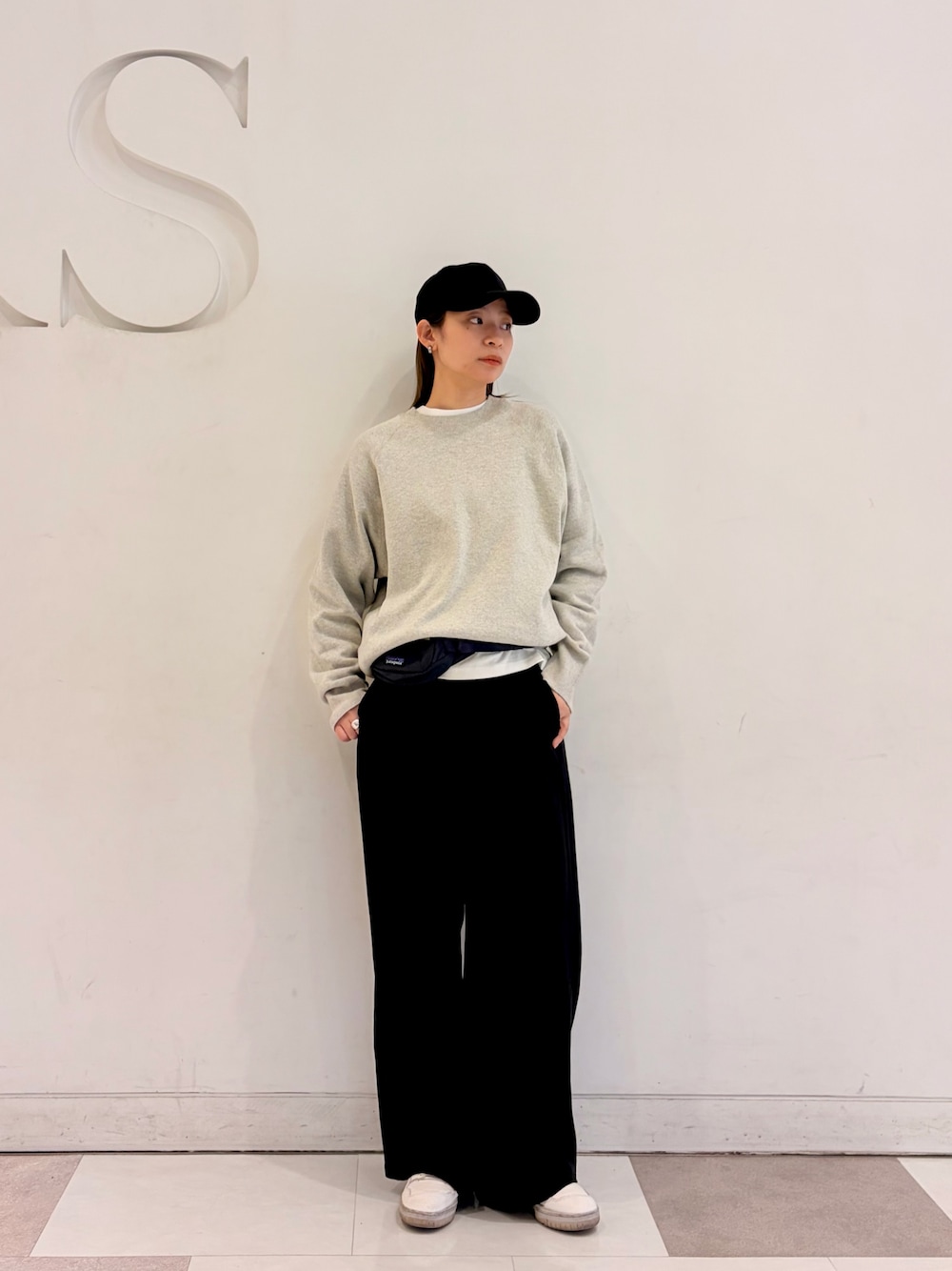 完声パンツはウエストゴムでストレスない穿き心地◎落ち感があるのですっきり見えます!