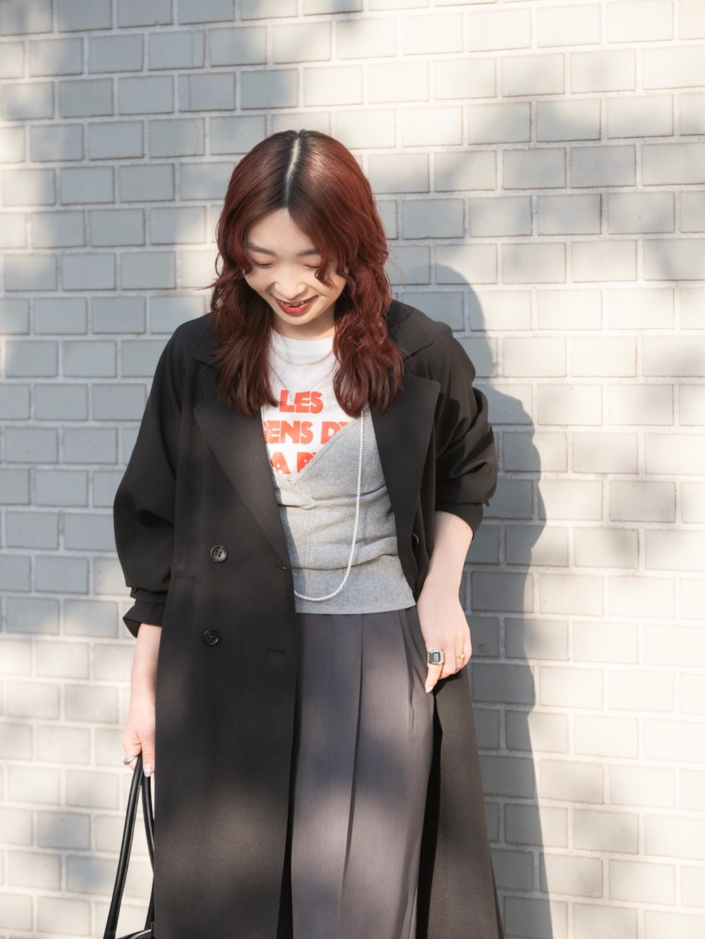 コートがBLACKなので、インナーで軽さを出してみました◎