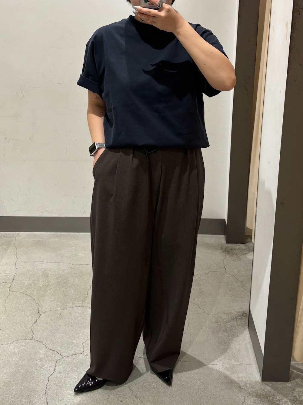 ・Tシャツは前だけインしてウエストスッキリ見せ!シルエットが寸胴にならないようにしてみました.ᐟ.ᐟ.ᐟ