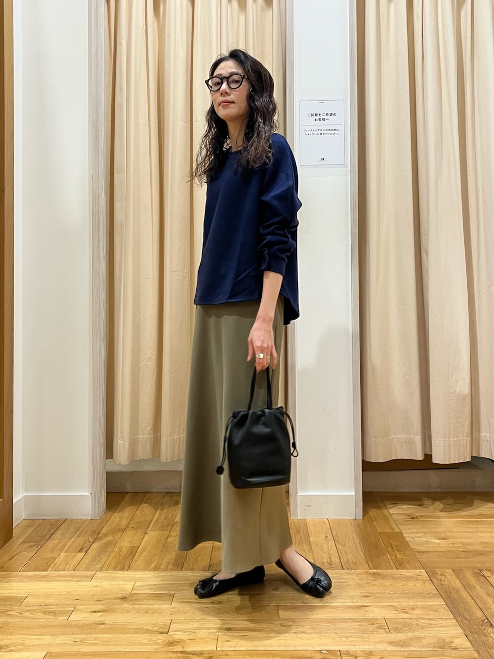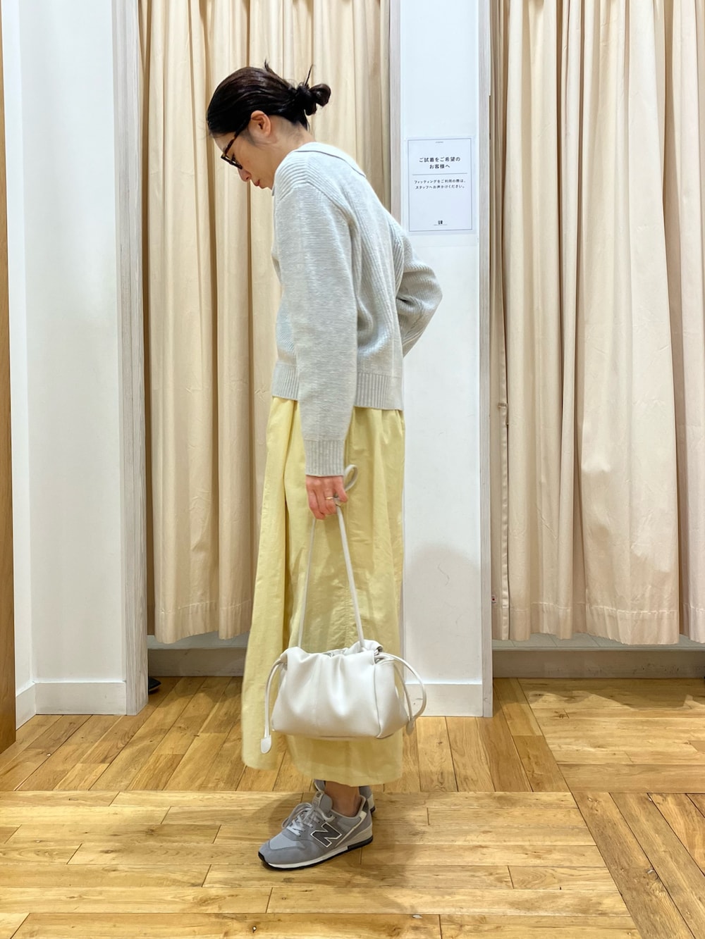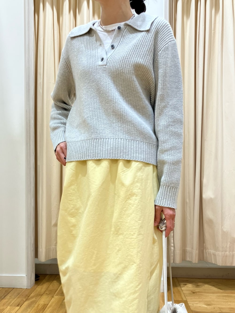 イエローのスカートでより春らしいコーデに。