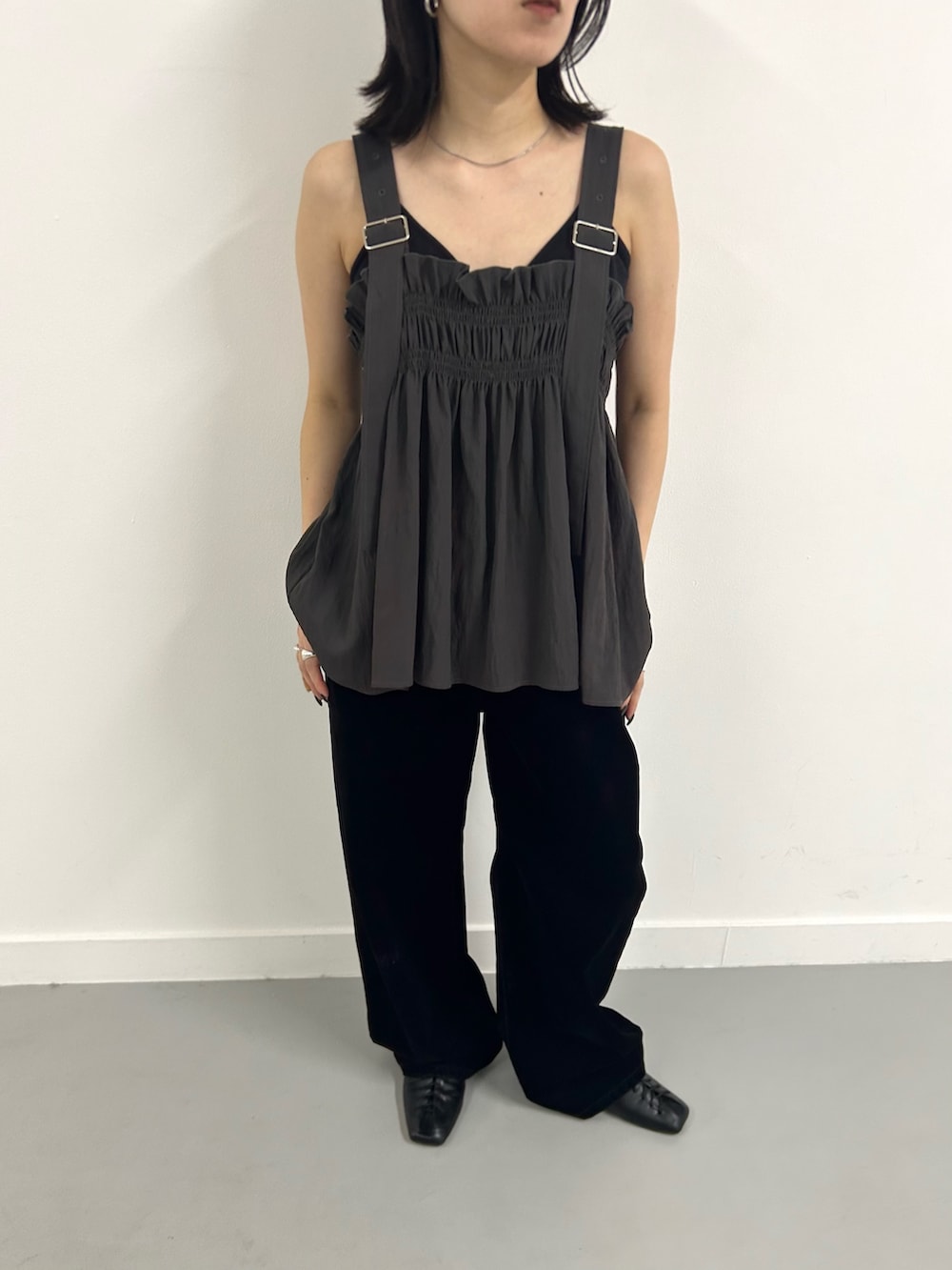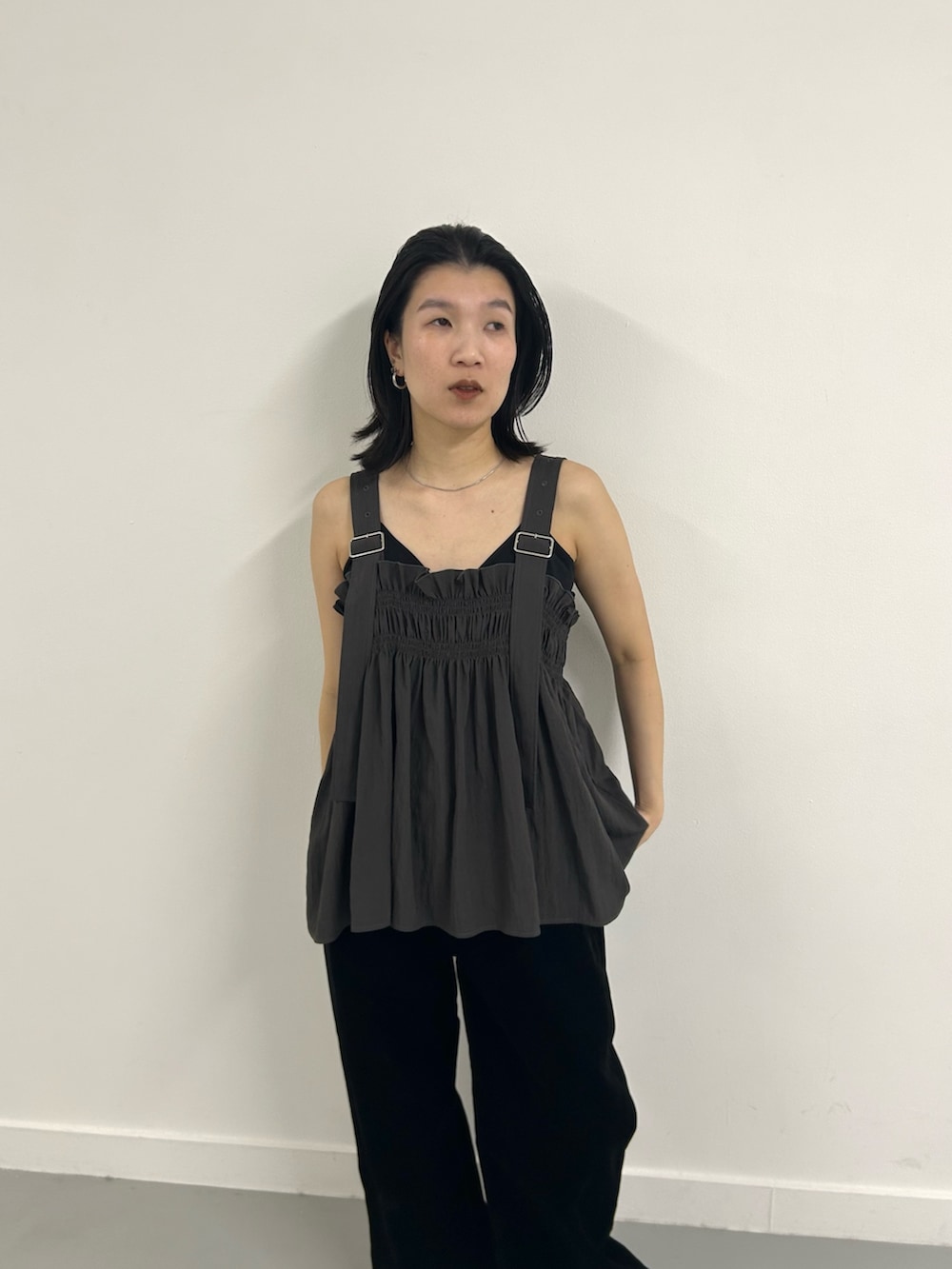 胸元のフリルは一周ぐるっとゴムになっていて、ピタッと感は強くないのでインナーに少し肉厚なものを着ても大丈夫です◎