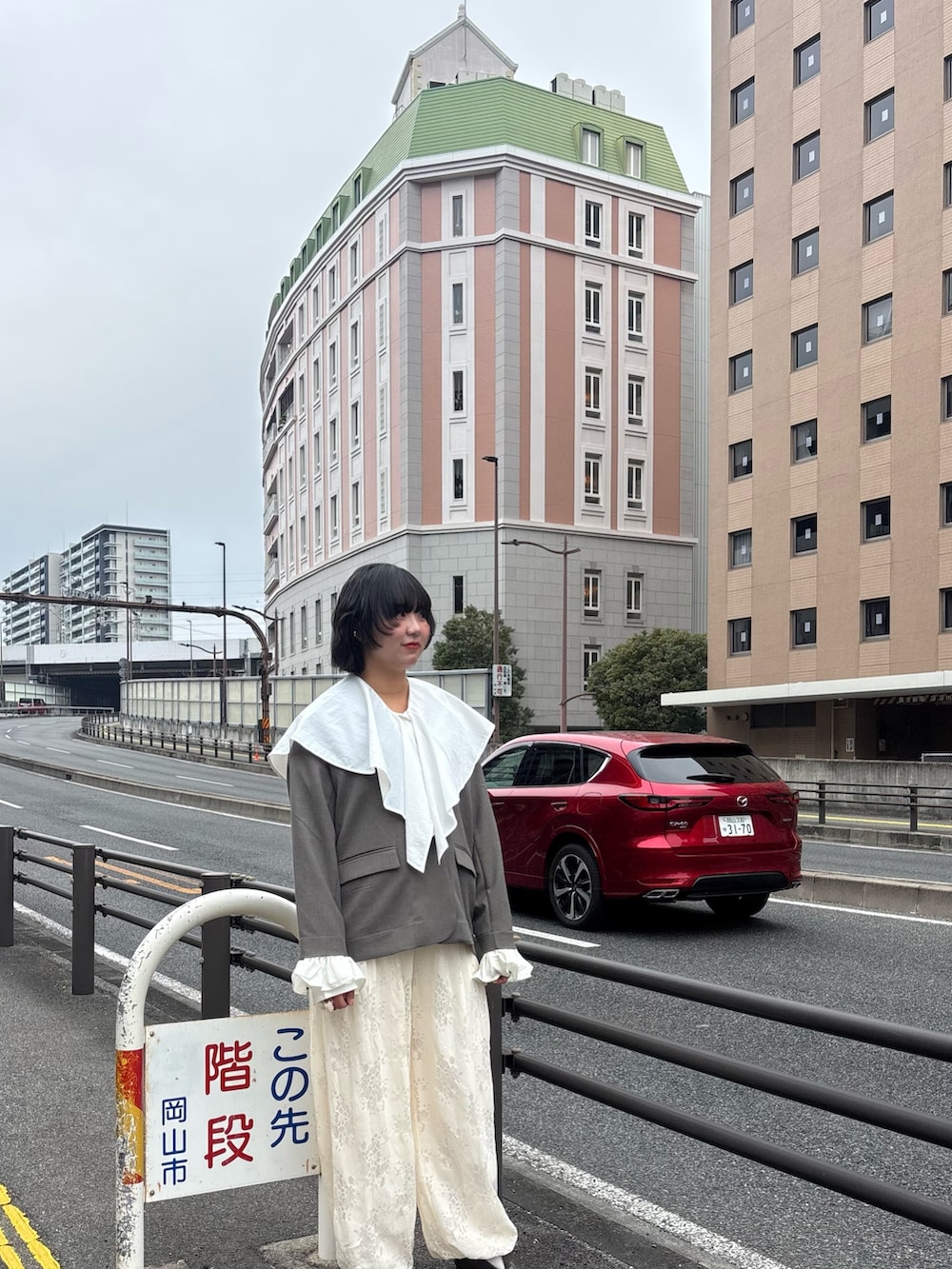 今回は大きな襟が特徴のブラウスとレース生地のパンツを使ってコーデを組んでみました!