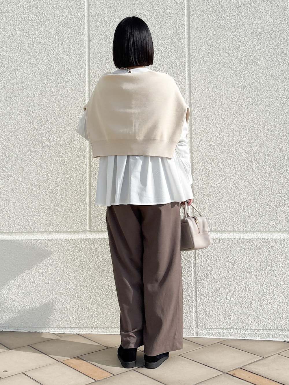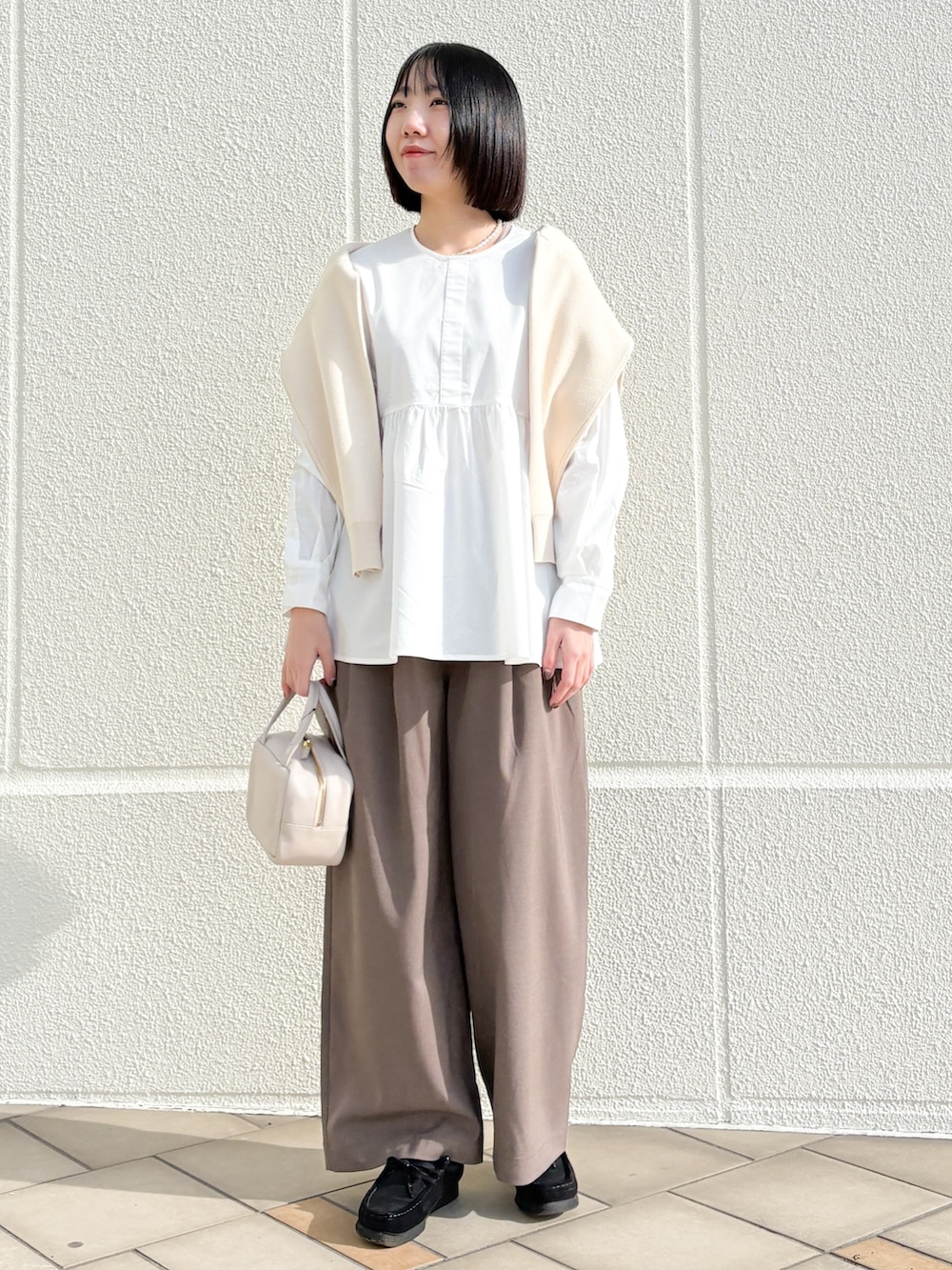 トップスに切り替えが入っているのでボトムにゆったりしたものを合わせてもやぼったく見えないです◎