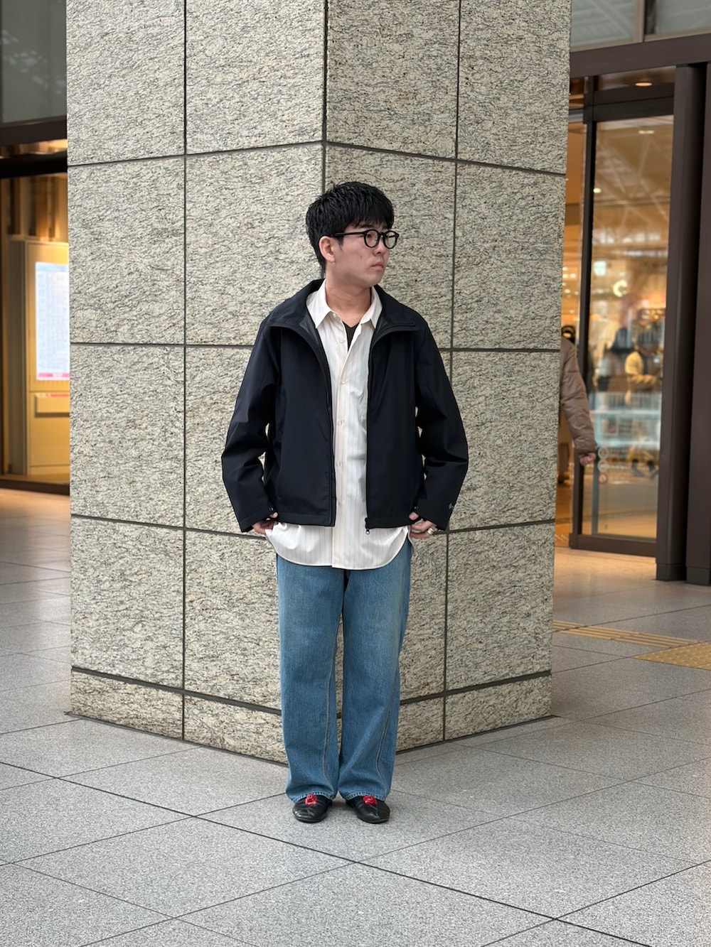 春っぽく、ブルゾンとトーマスメイソンのシャツで。