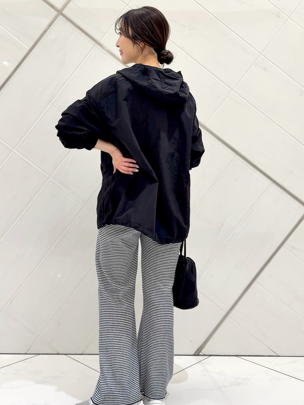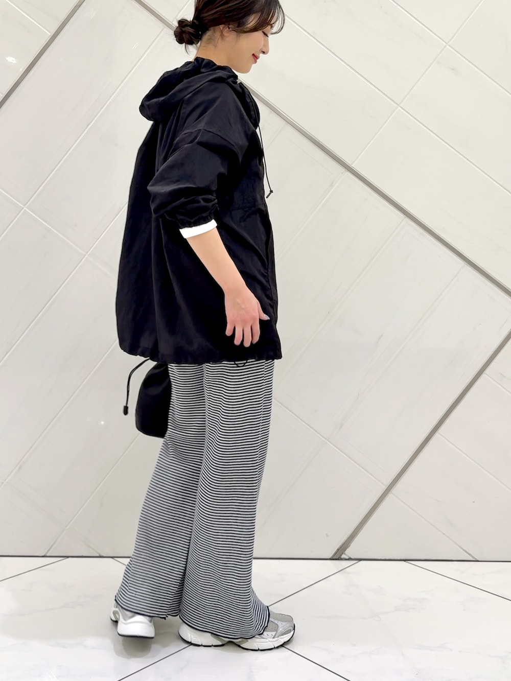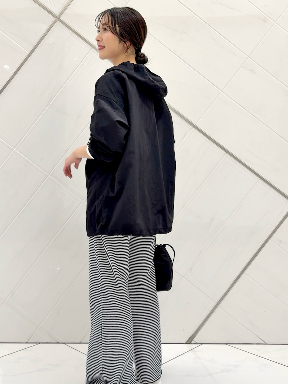 パーカーはシアー感のあるナイロン生地で軽い着心地です。