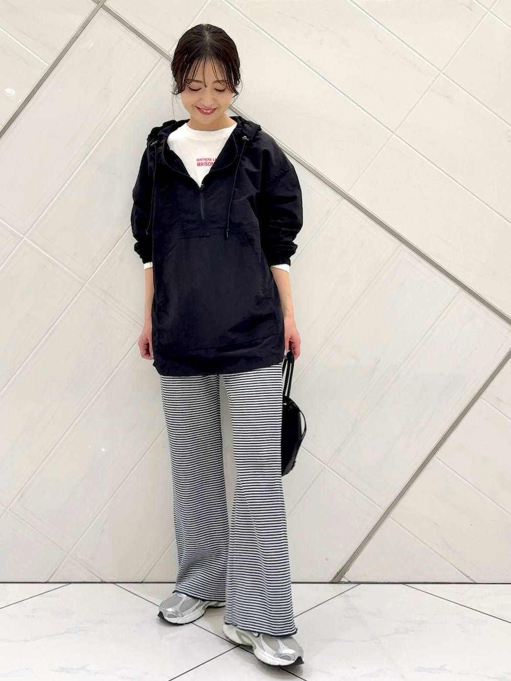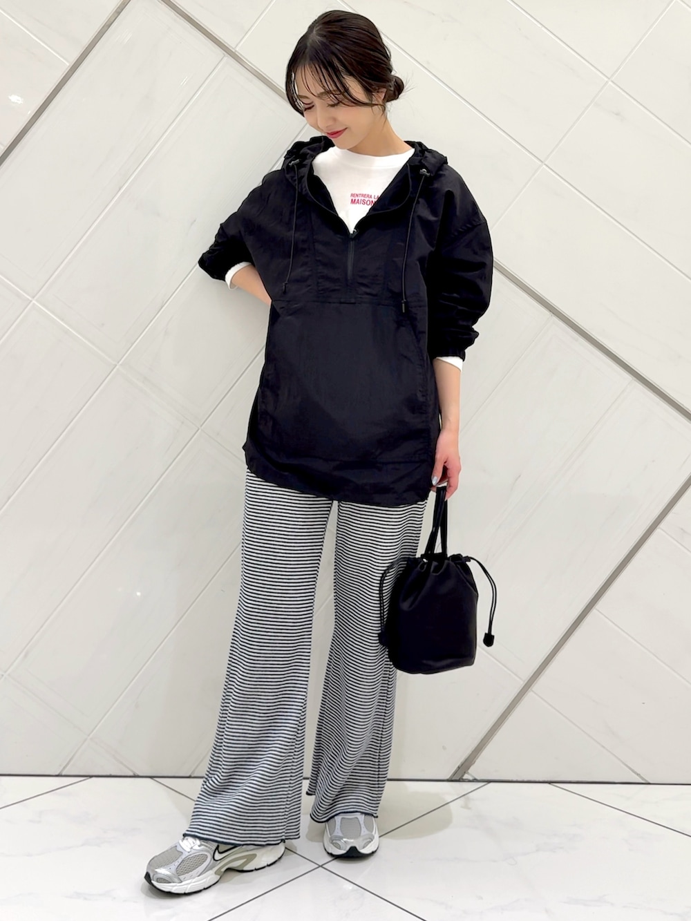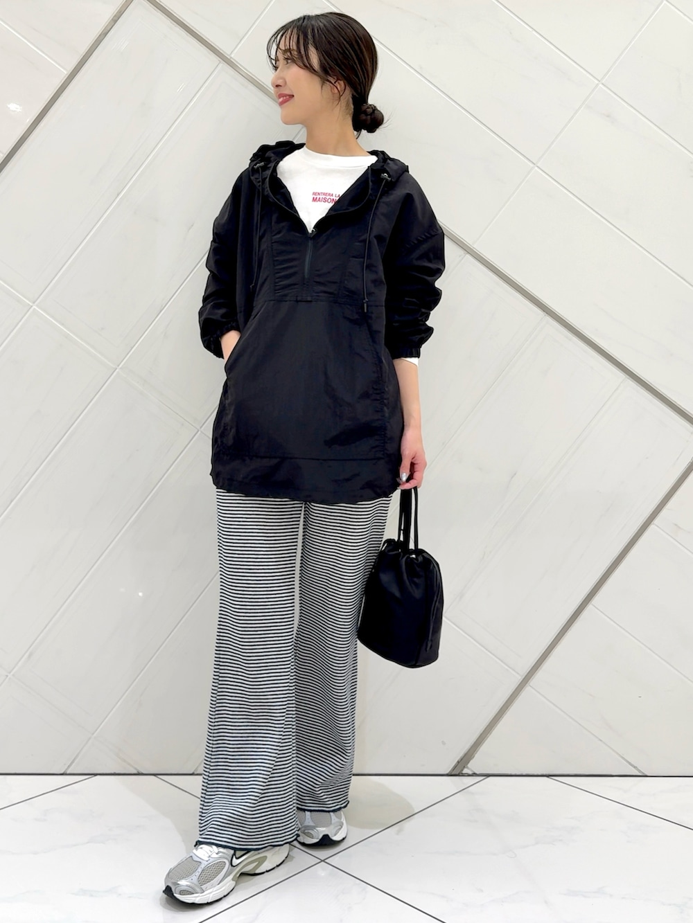 パーカーはシアー感のあるナイロン生地で軽い着心地です。