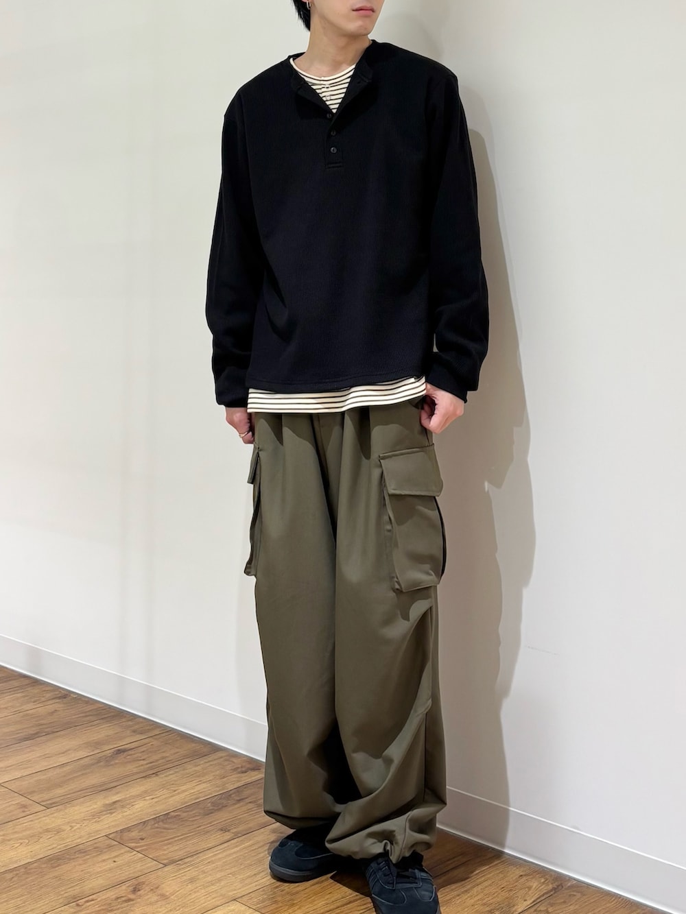 SENSE OF PLACEワッフルヘンリーネックロングTシャツ- カラー: