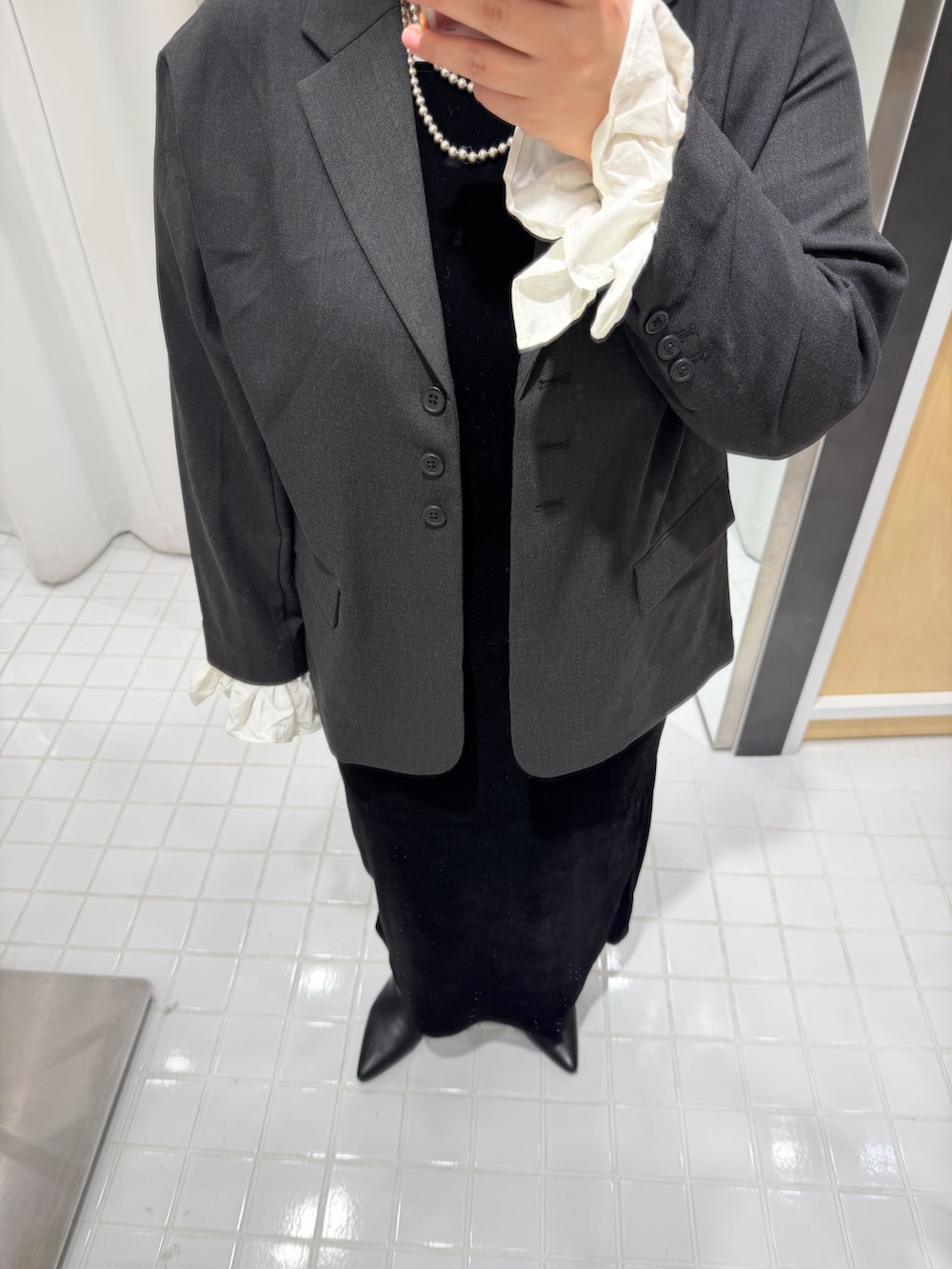 ジャケットはゆるっと羽織れるサイズ感で、オンオフどちらでも着やすくておすすめです!