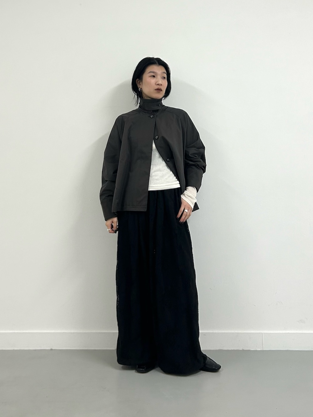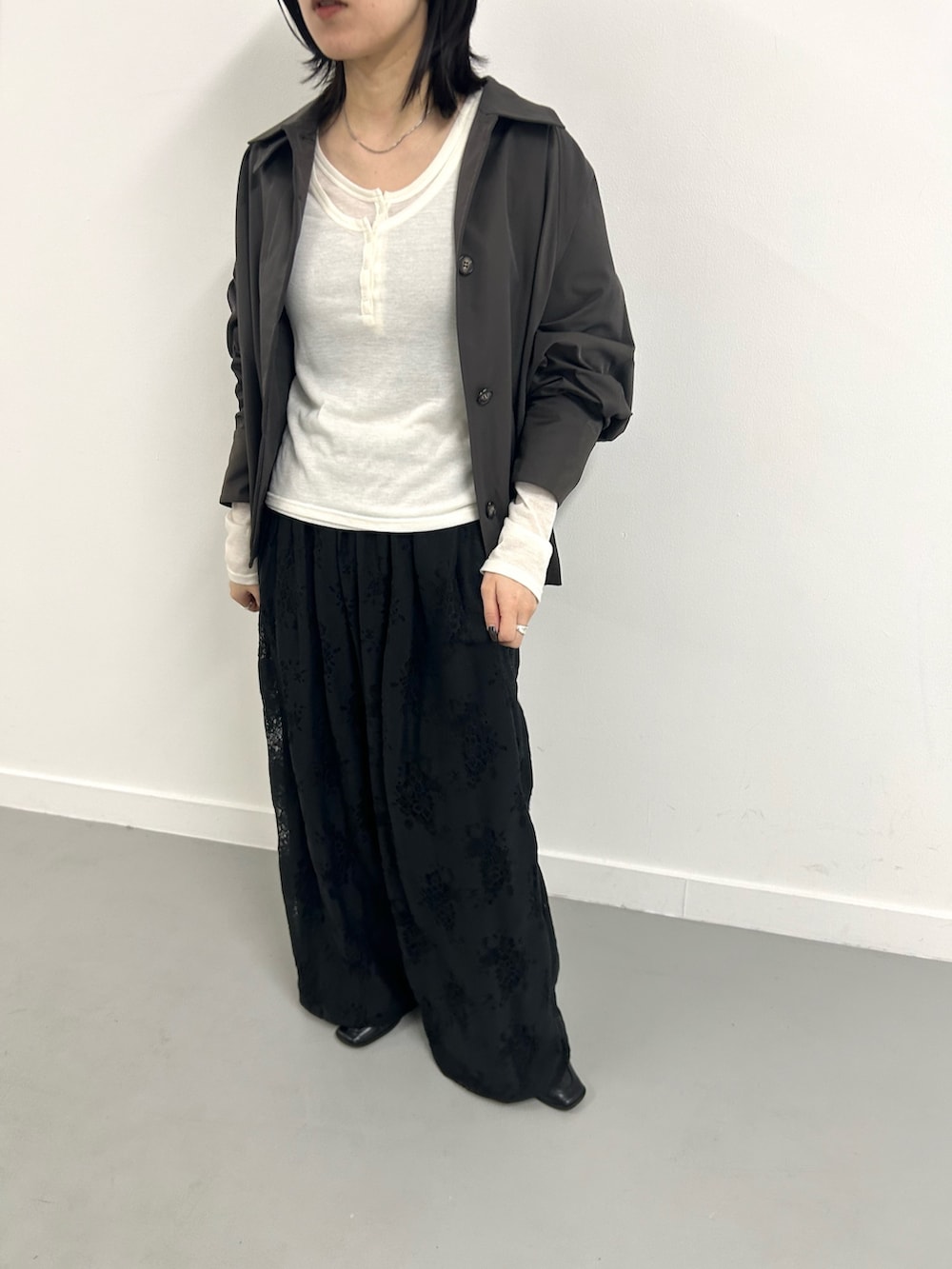 合わせたレースパンツは裾を絞ってバルーンシルエットにできます◎