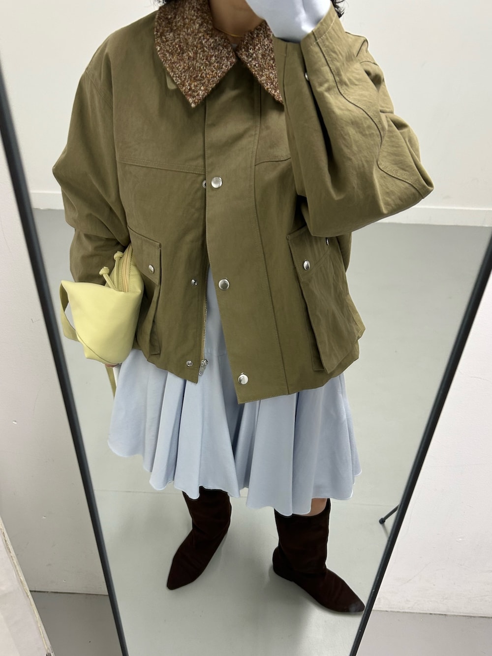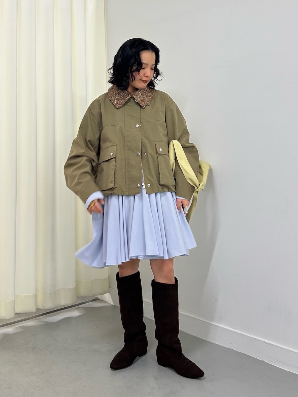 カジュアルなカラーなので、甘めなワンピースと合わせてみました◎