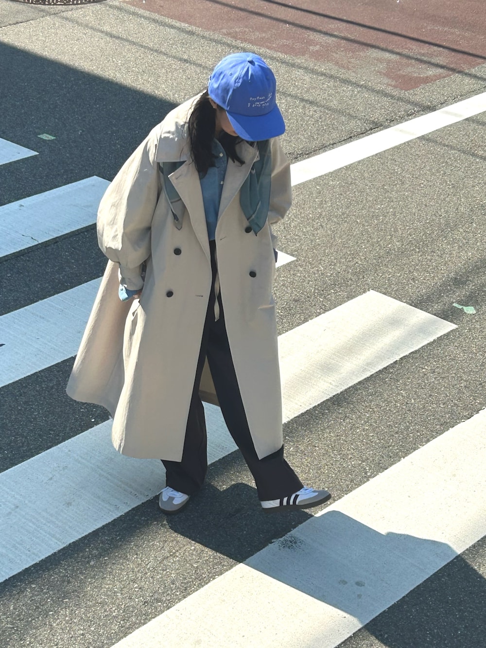 帽子やバッグなどは華やかなカラーアイテムを選んで遊び心のあるスタイルに仕上げました。