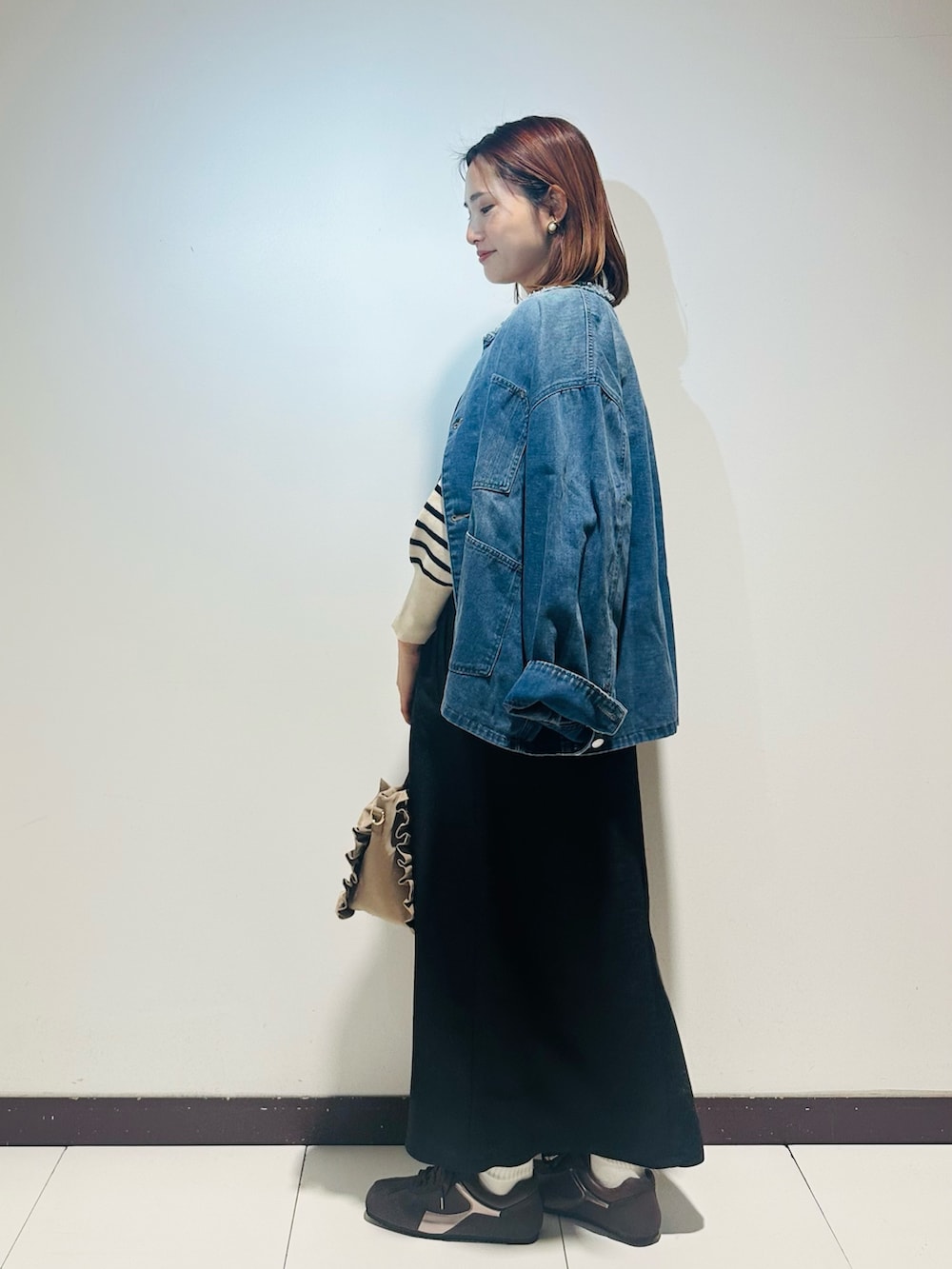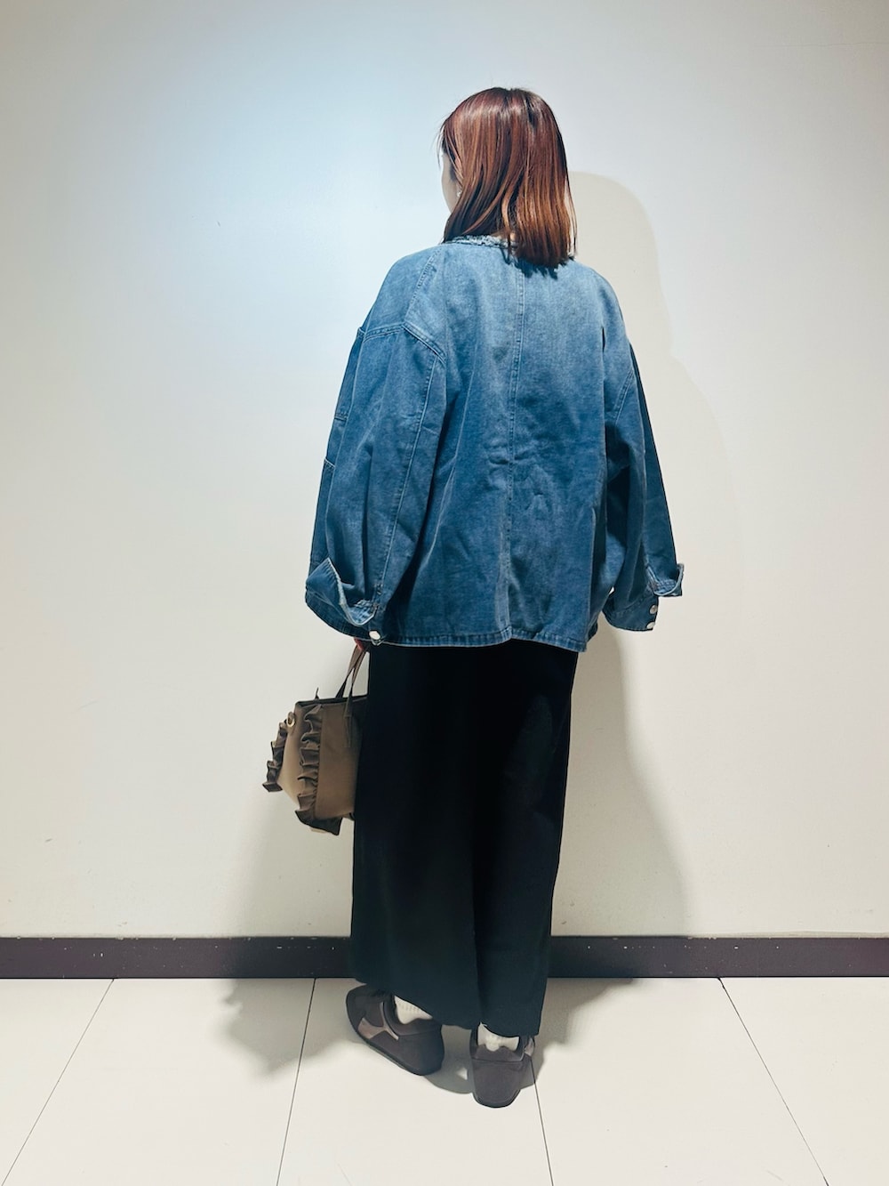 ITEMSデニムオーバーノーカラージャケット- 着用カラー: