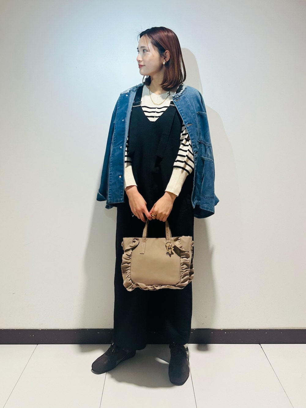 インナー次第で、オンオフ着られるジャンスカはコーデの幅も広がります‼️