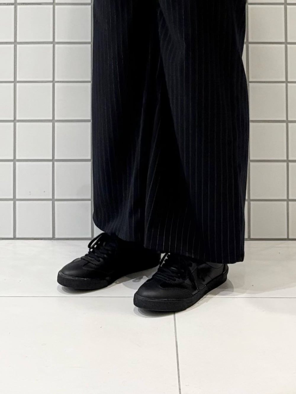 ワイドスラックスでリラックス感がありながらも全体はしっかりとキレイな合わせに!