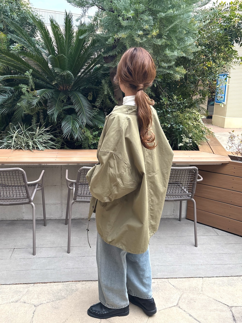 ゆったりシルエットのアウターに
