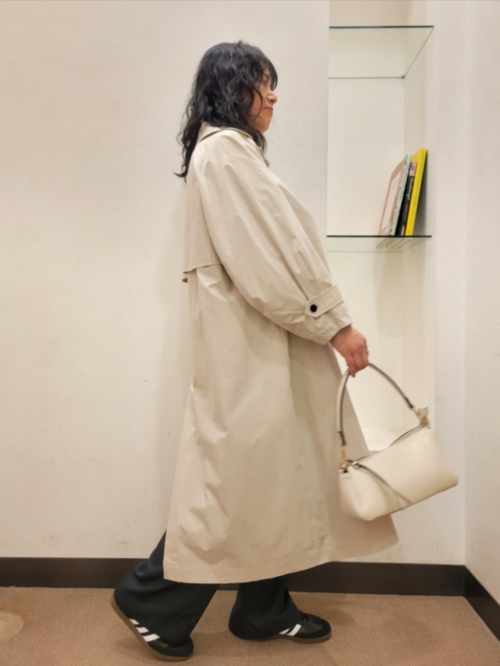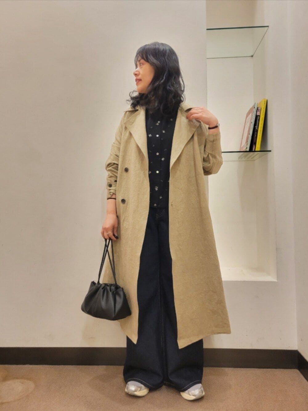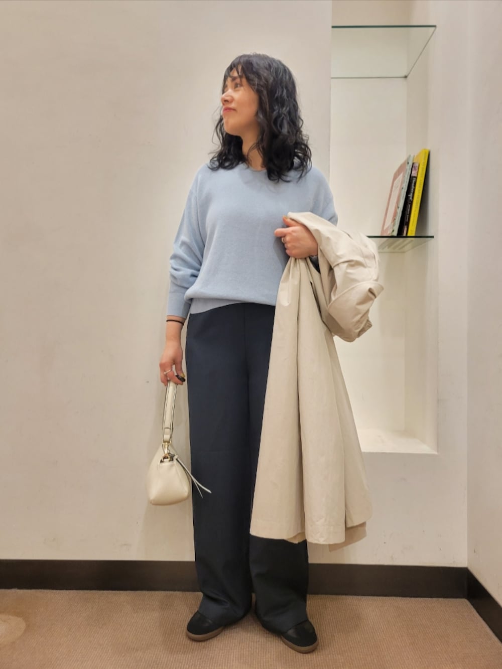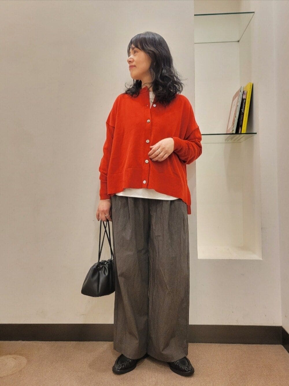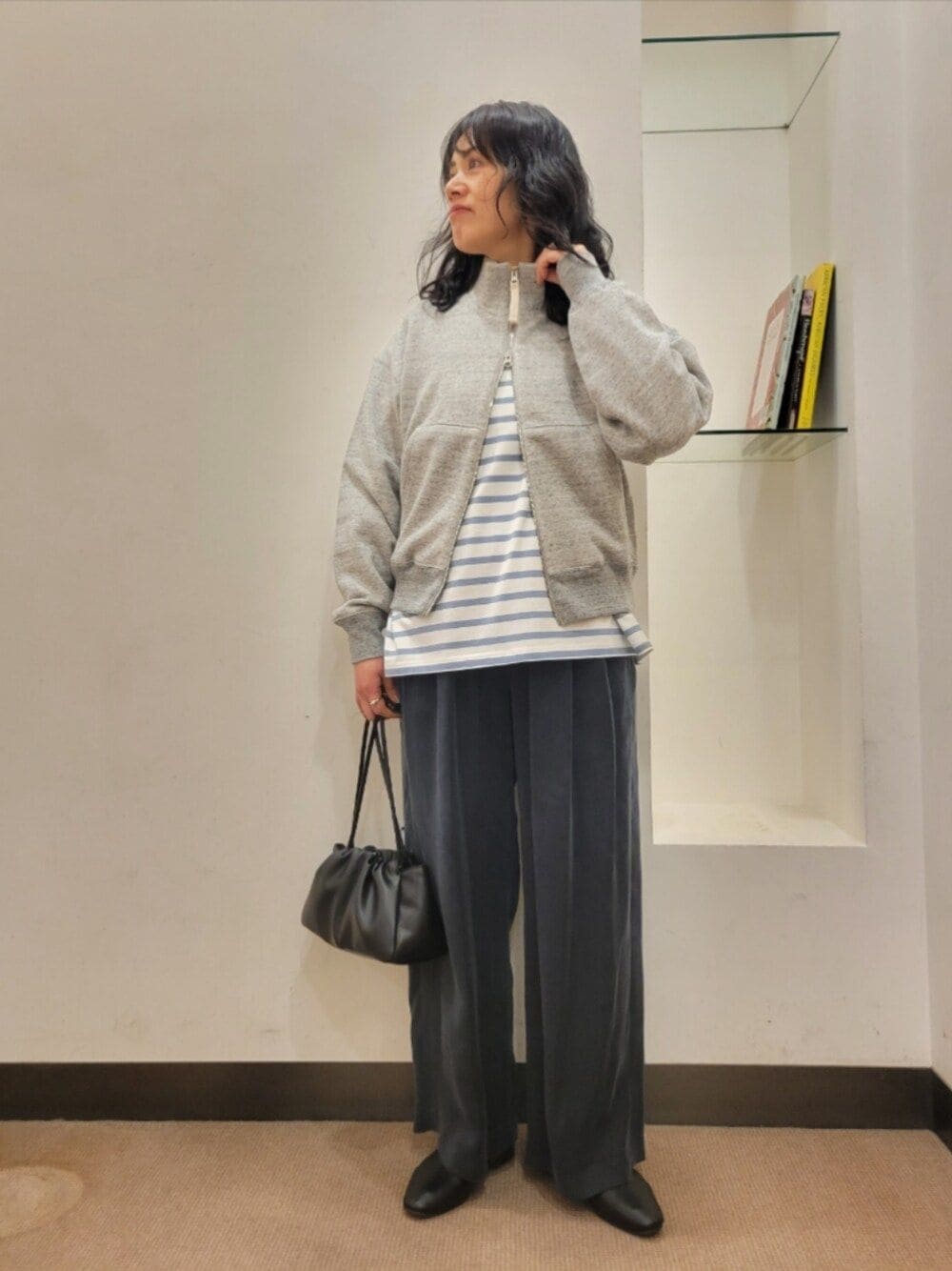 厚手のアイテムも中に着やすいです。