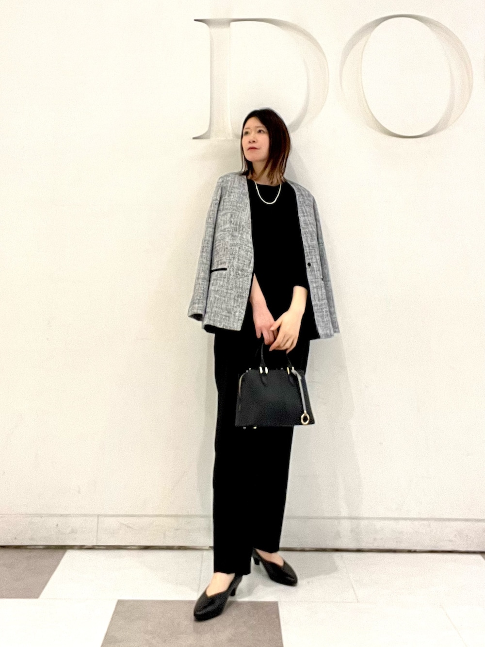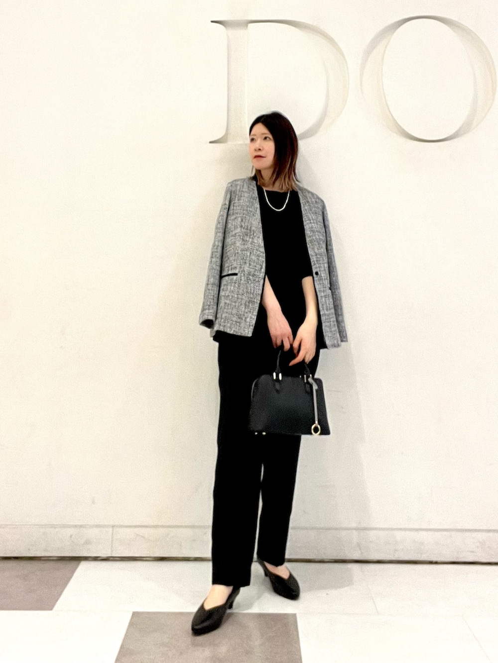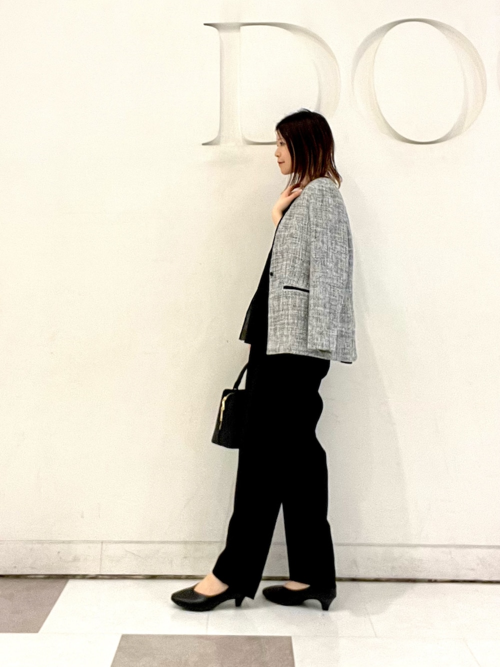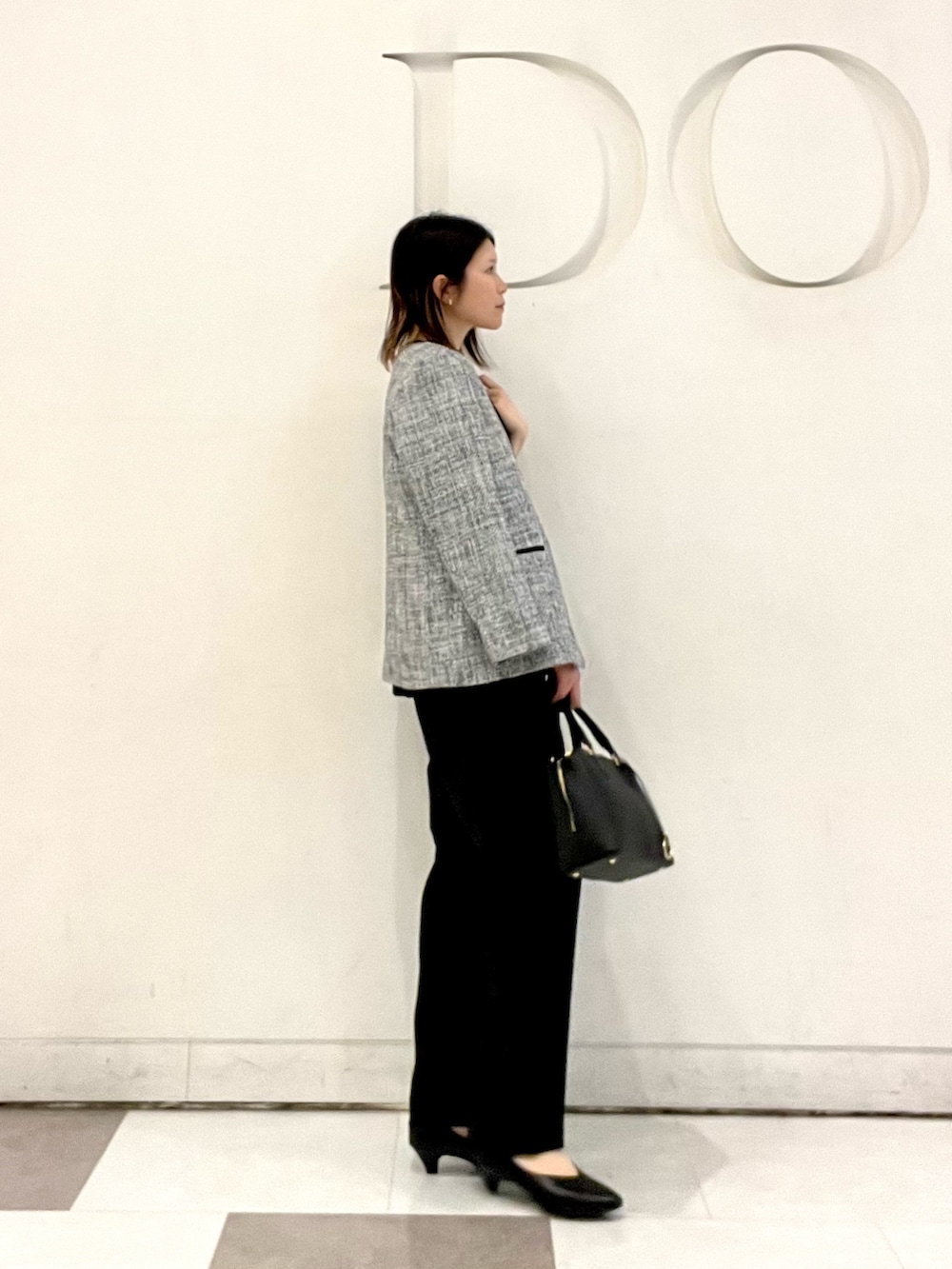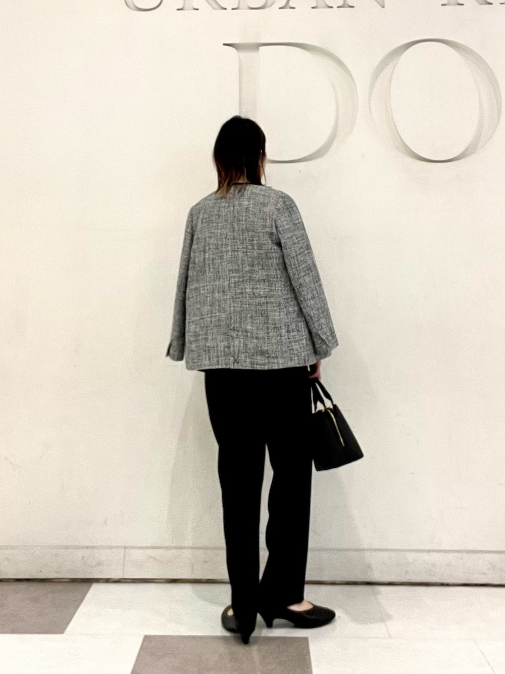 DOORS定番のツイードジャケットは羽織るだけで華やかな印象に◎ヒップにかかるほどのベーシックな着丈なのでパンツにもスカートともバランスが取りやすいです!