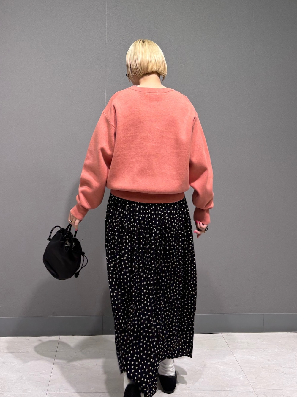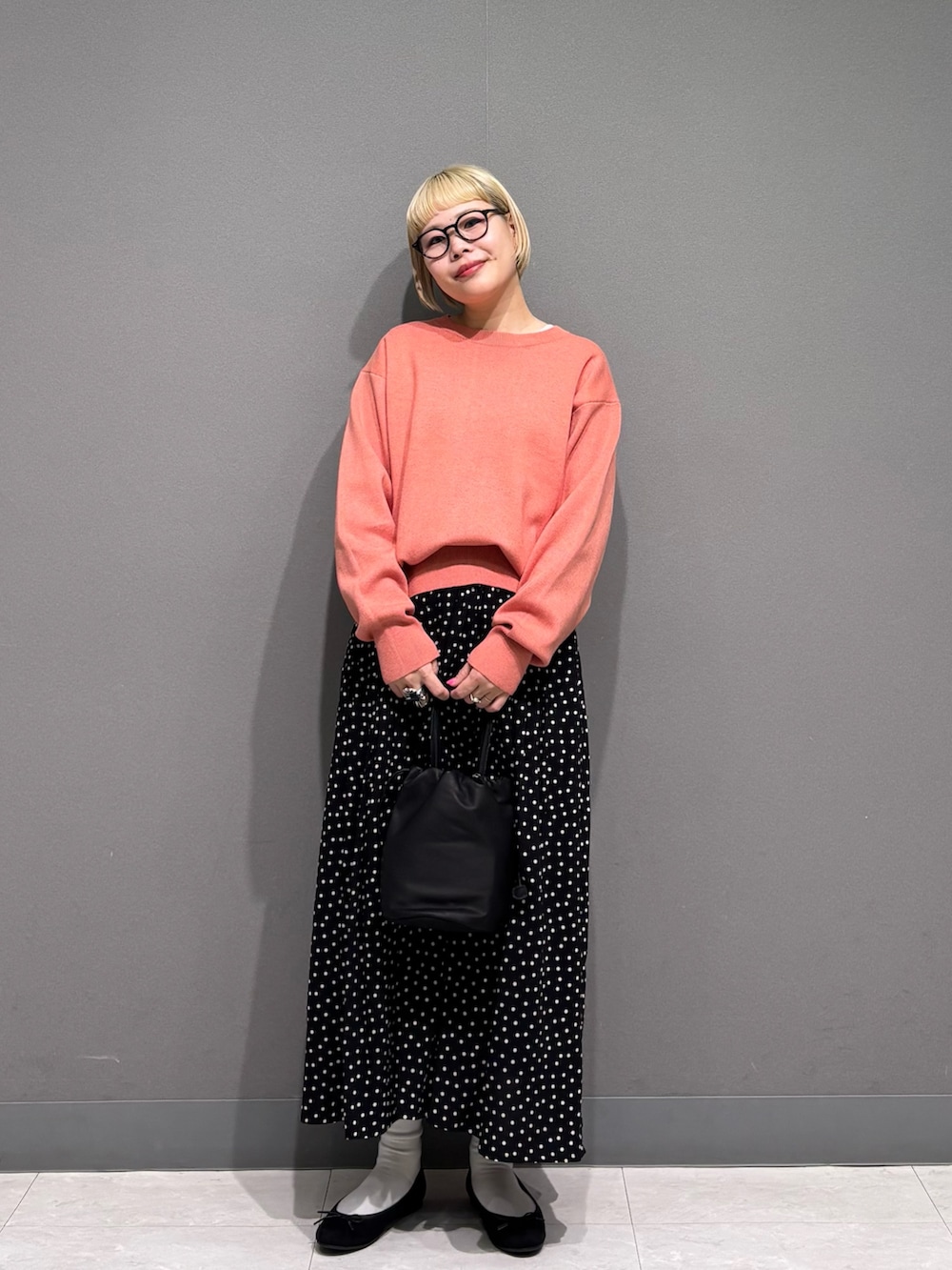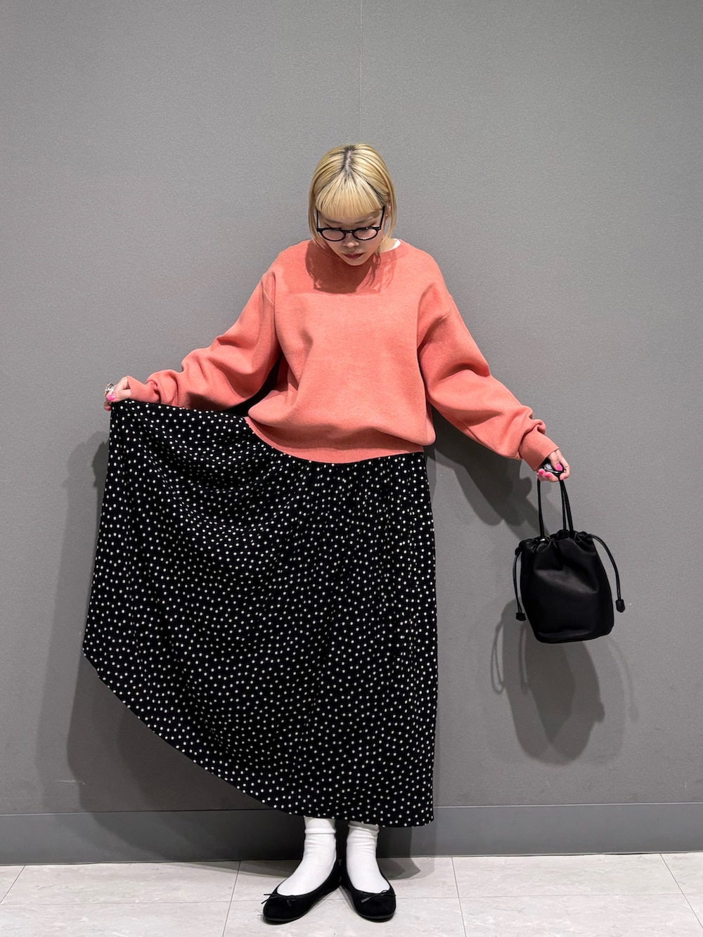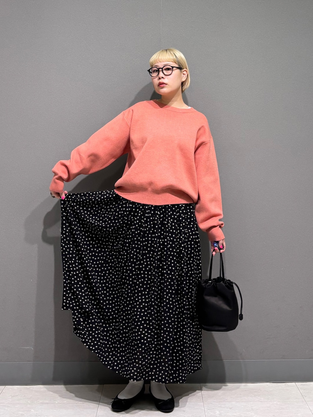 ドット柄スカートと合わせて