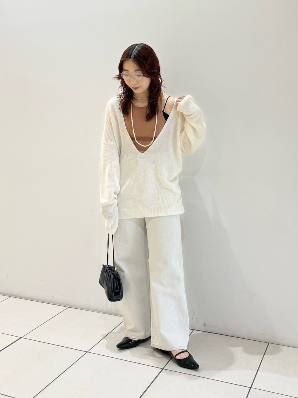 Vネックが深めなのでインナーで遊んで頂けます◎
