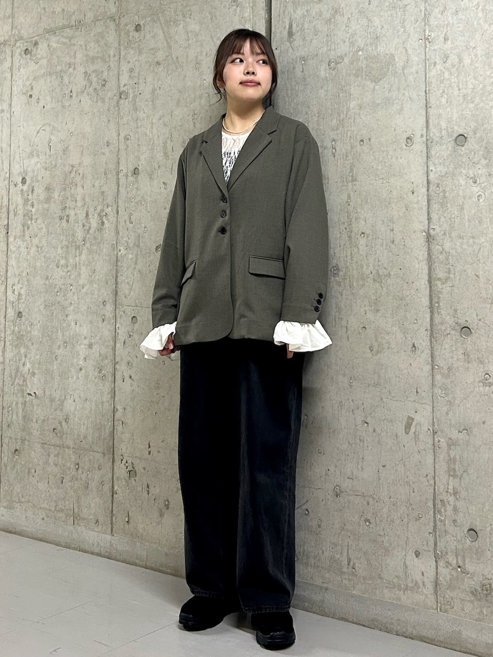 インナーに着ているレースは手元がくしゃっとしたデザインで暖かくなれば、1枚でも可愛いですよ✨