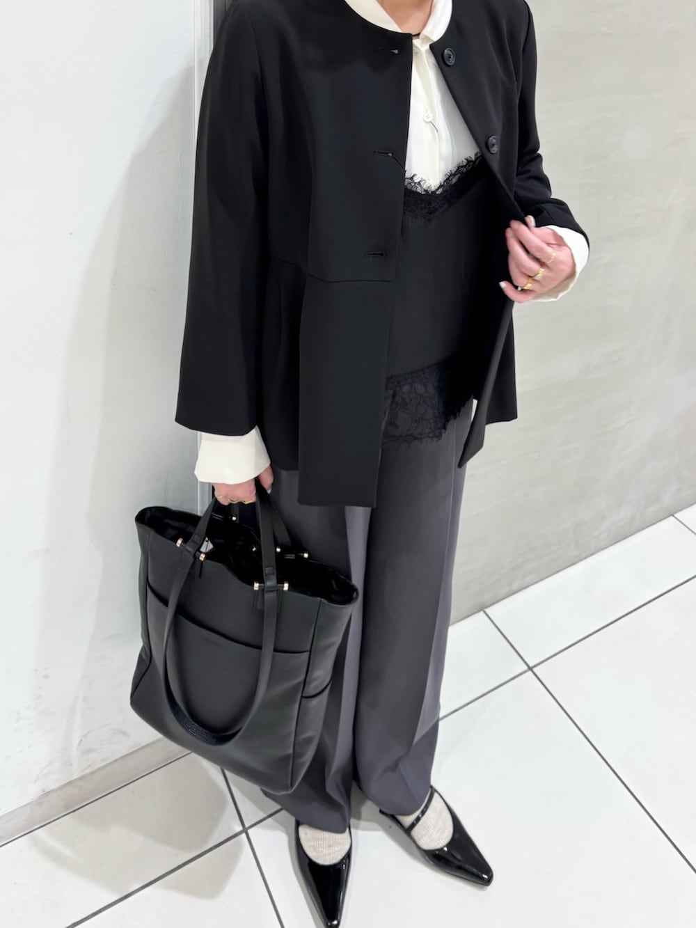 ペプラムのノーカラージャケットは優しく柔らかな印象👸✨
