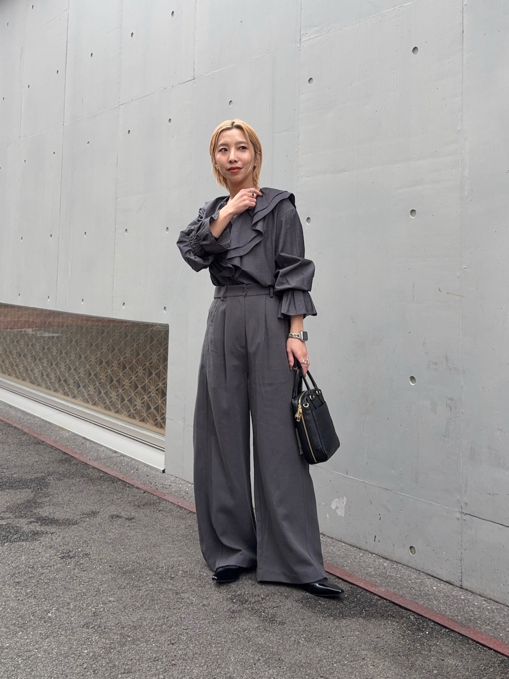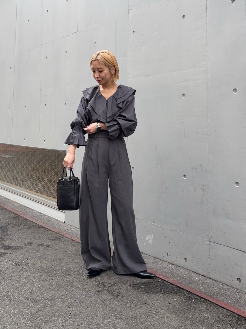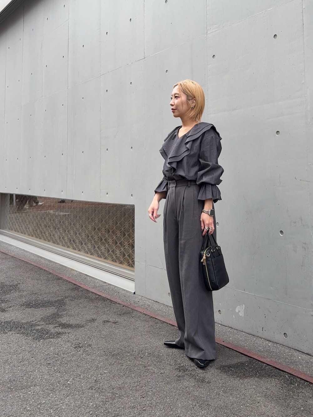 ROSSOVネックラッフルシアーデニムブラウス- カラー: