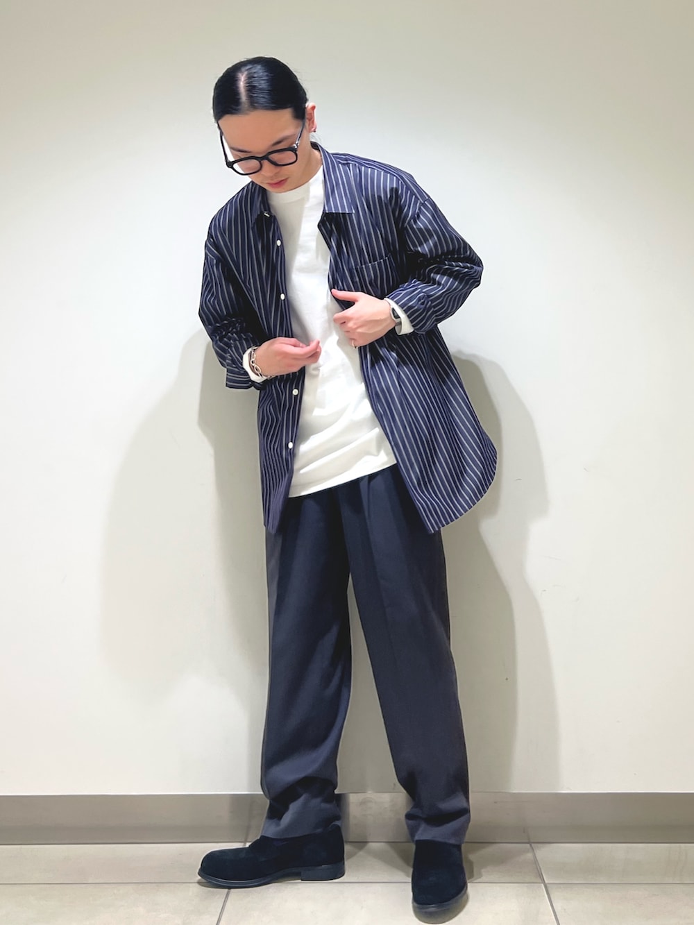足元はスエードのコインローファー👞