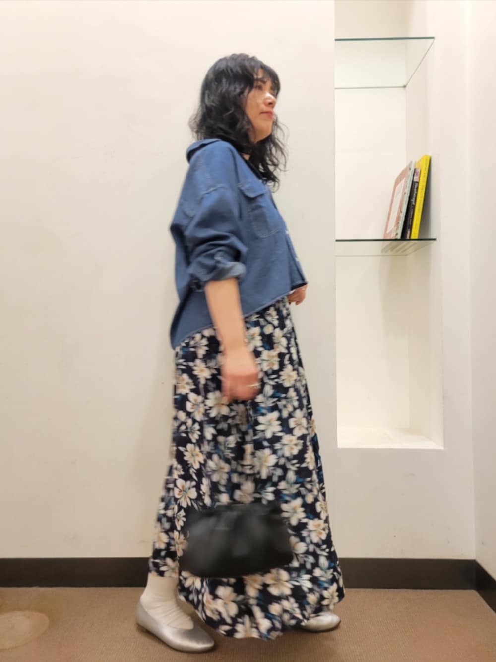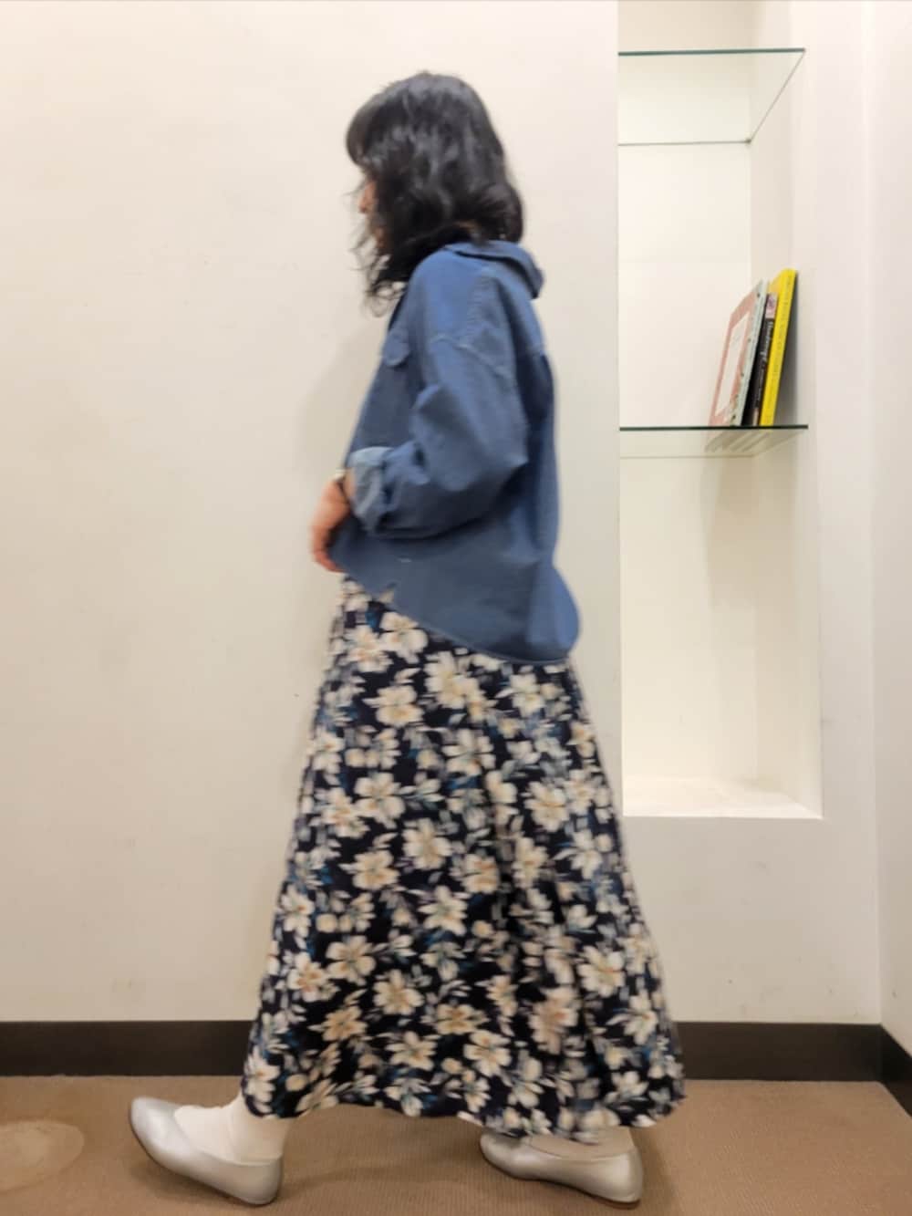 デニムシャツはゆったりで