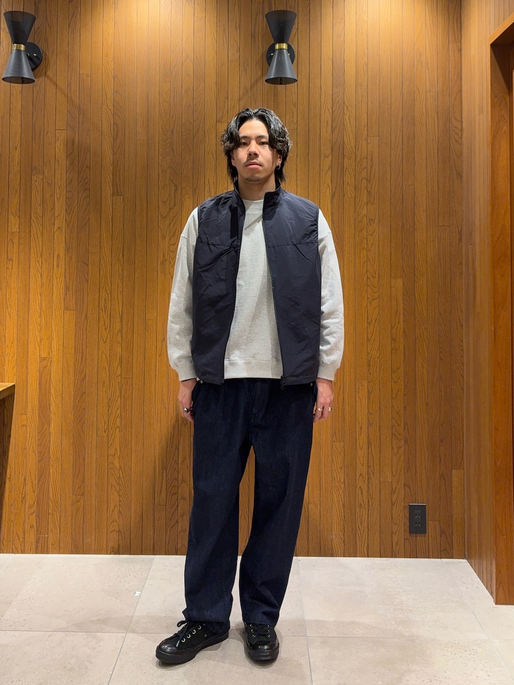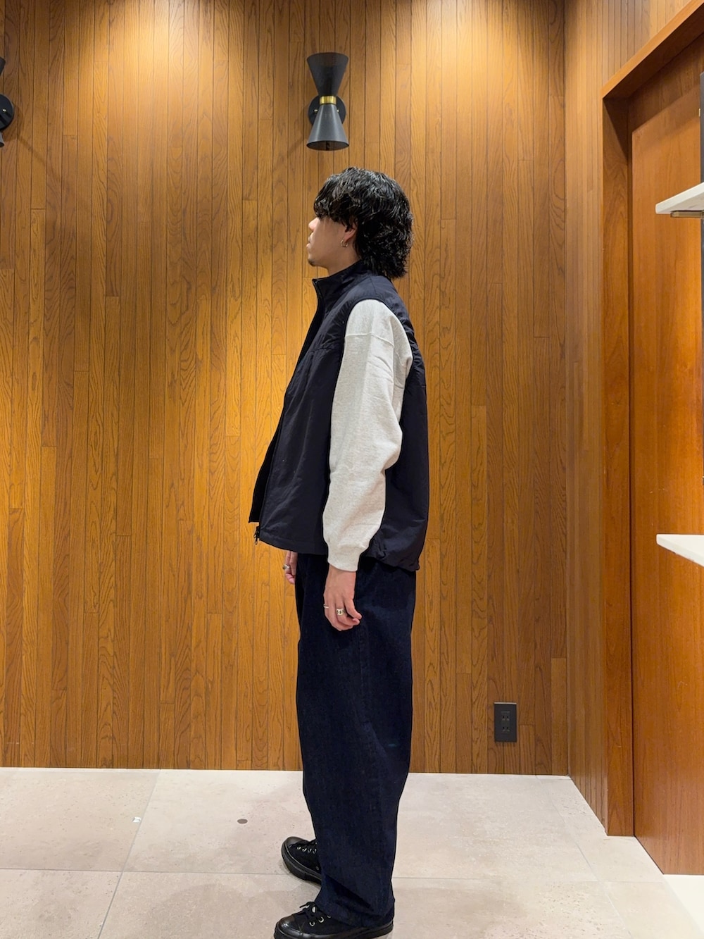 本来はゆとりのある設計のベストですが、自分が着ると程よく収まり、全体を自然に引き締めてくれる絶妙なバランスに🤔