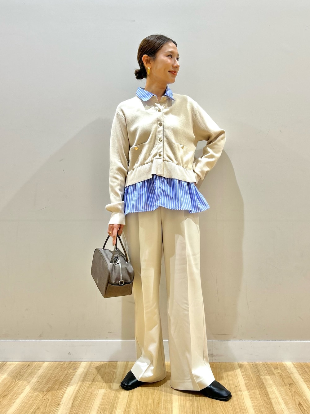 ゴールドのボタンが上品なポイントです✨