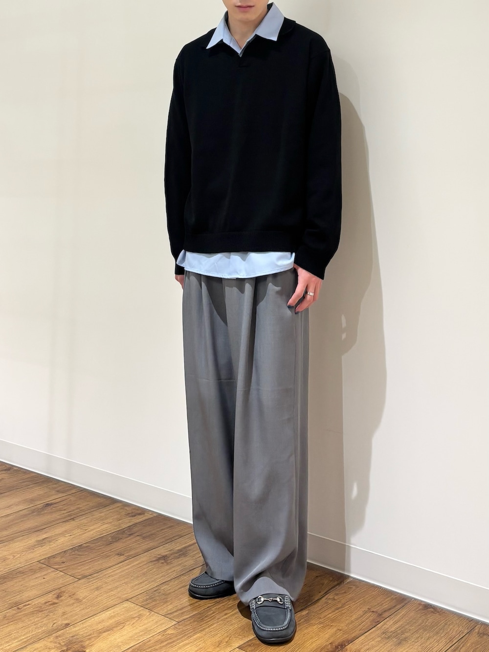 SENSE OF PLACE『洗濯可』スキッパーロングスリーブニット- カラー: