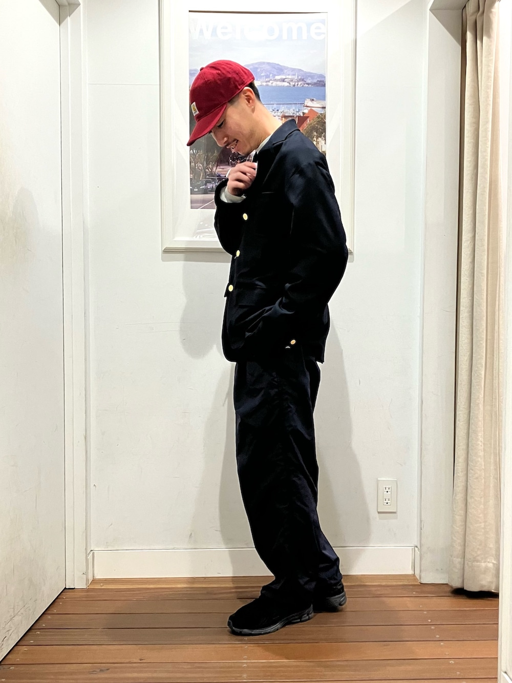 スウェットなどラフなアイテムと合わせるのが楽しいと思います⤴︎