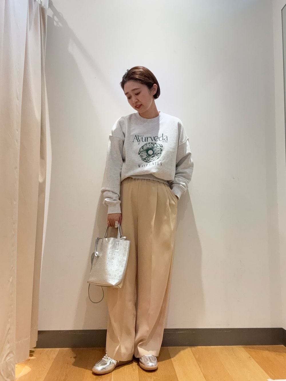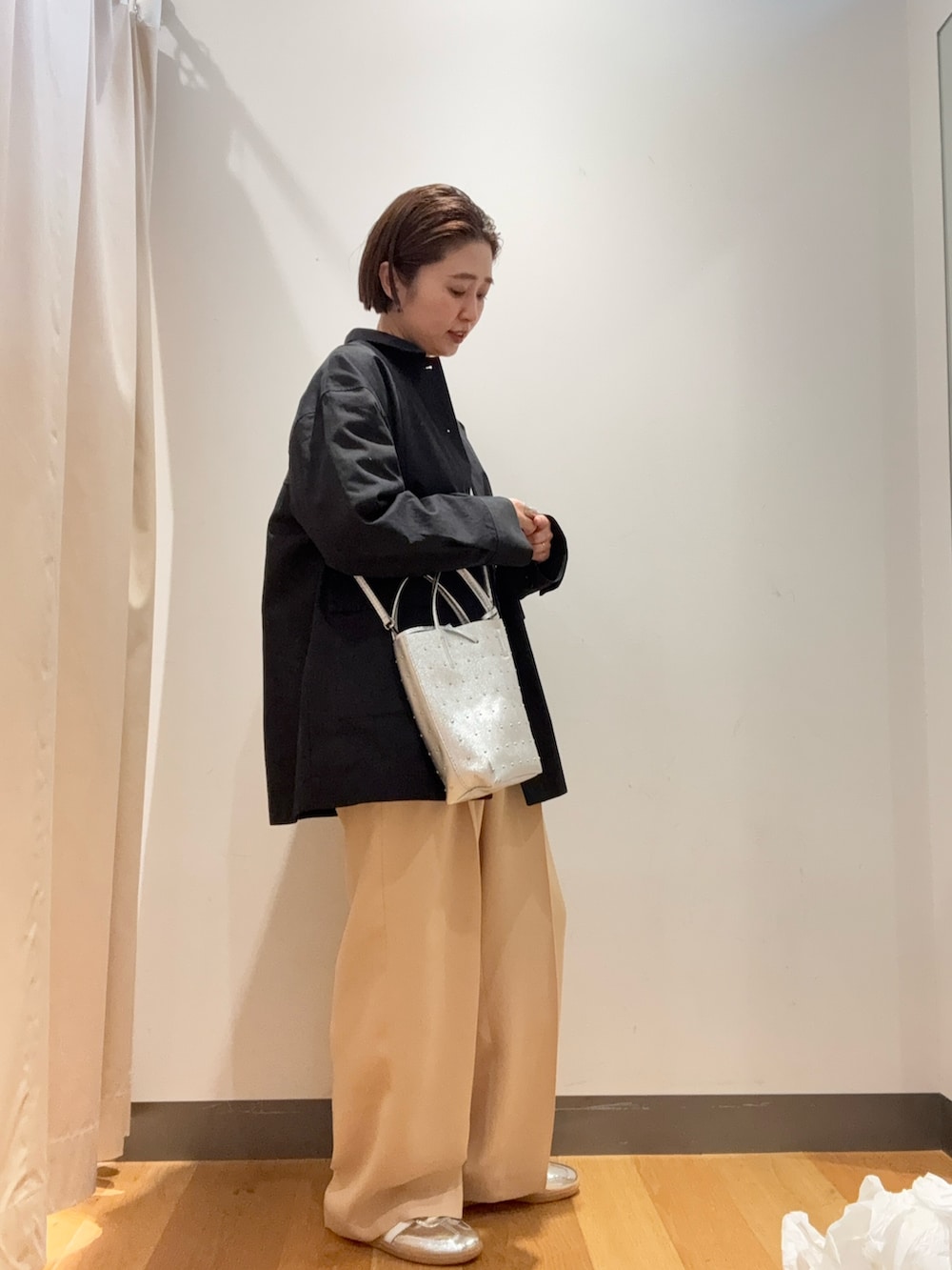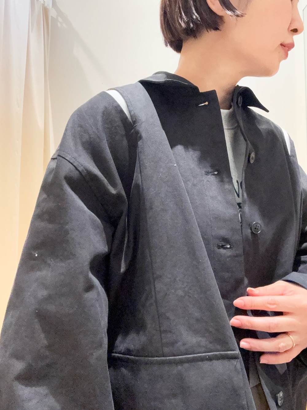 シンプルなシルエットなので、デザインがアクセントになるLAATOのアウターを合わせました☺️