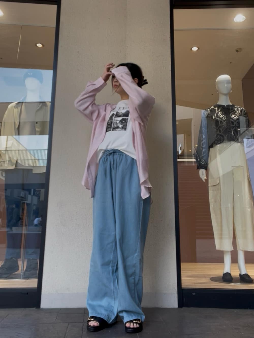 ブラックのセットアップに赤のニットを合わせ、色でアクセントをつけたコーディネートです。全体は落ち着いたトーンでまとめつつ、インナーの赤で印象を引き締めました。バケットハットで少し抜け感を出し、きれいめすぎないバランスを意識しています。