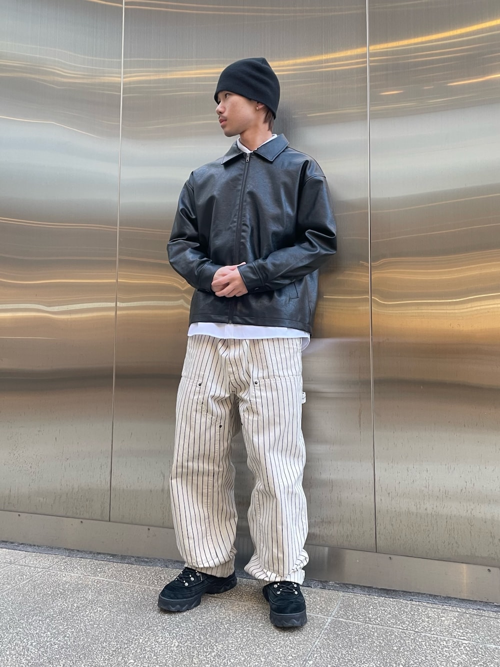 ダブルジャケットのセットアップコーデになります。