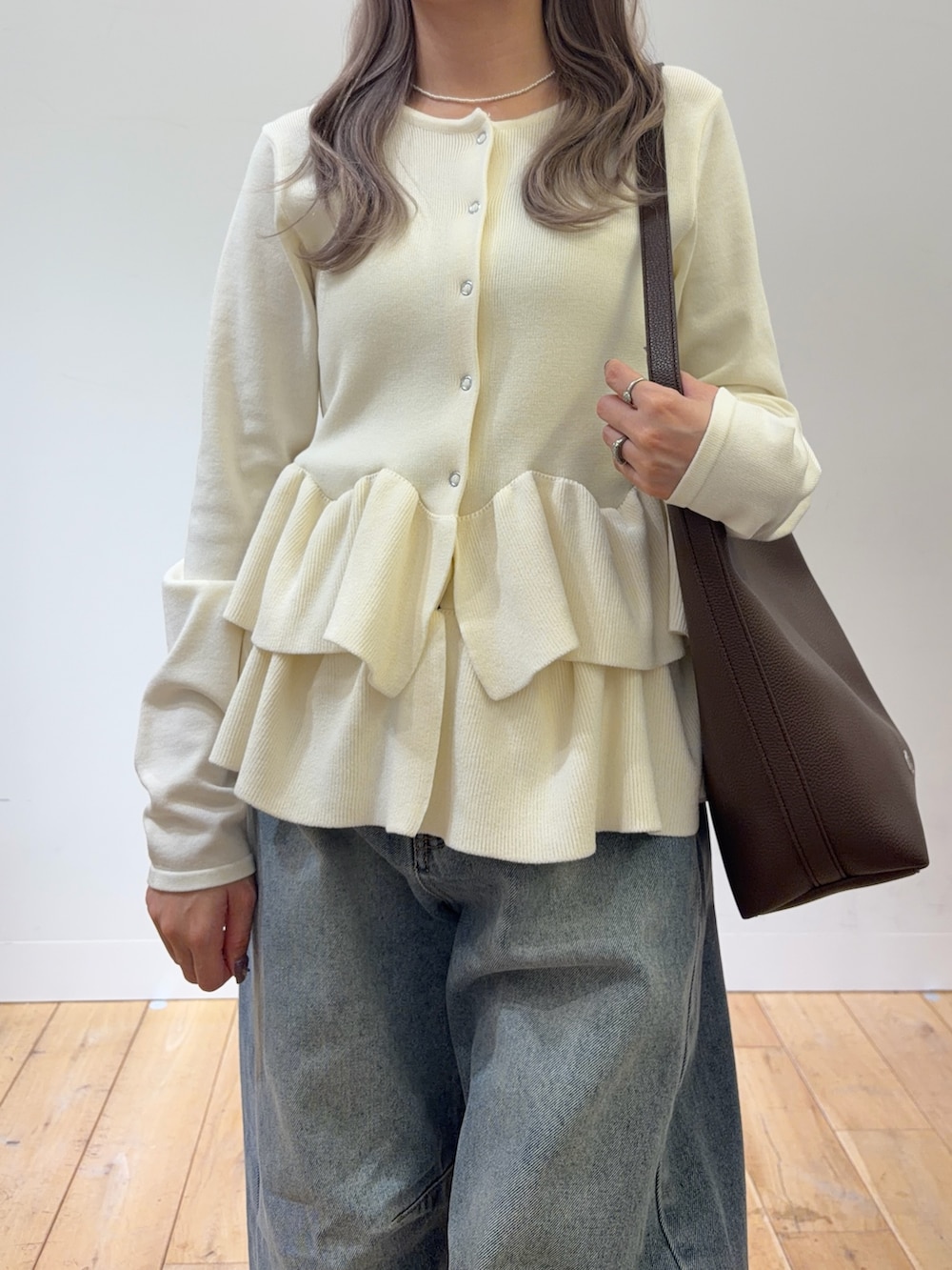 SENSE OF PLACE『洗濯可』ウェーブペプラムニットカーディガン- 着用カラー:
