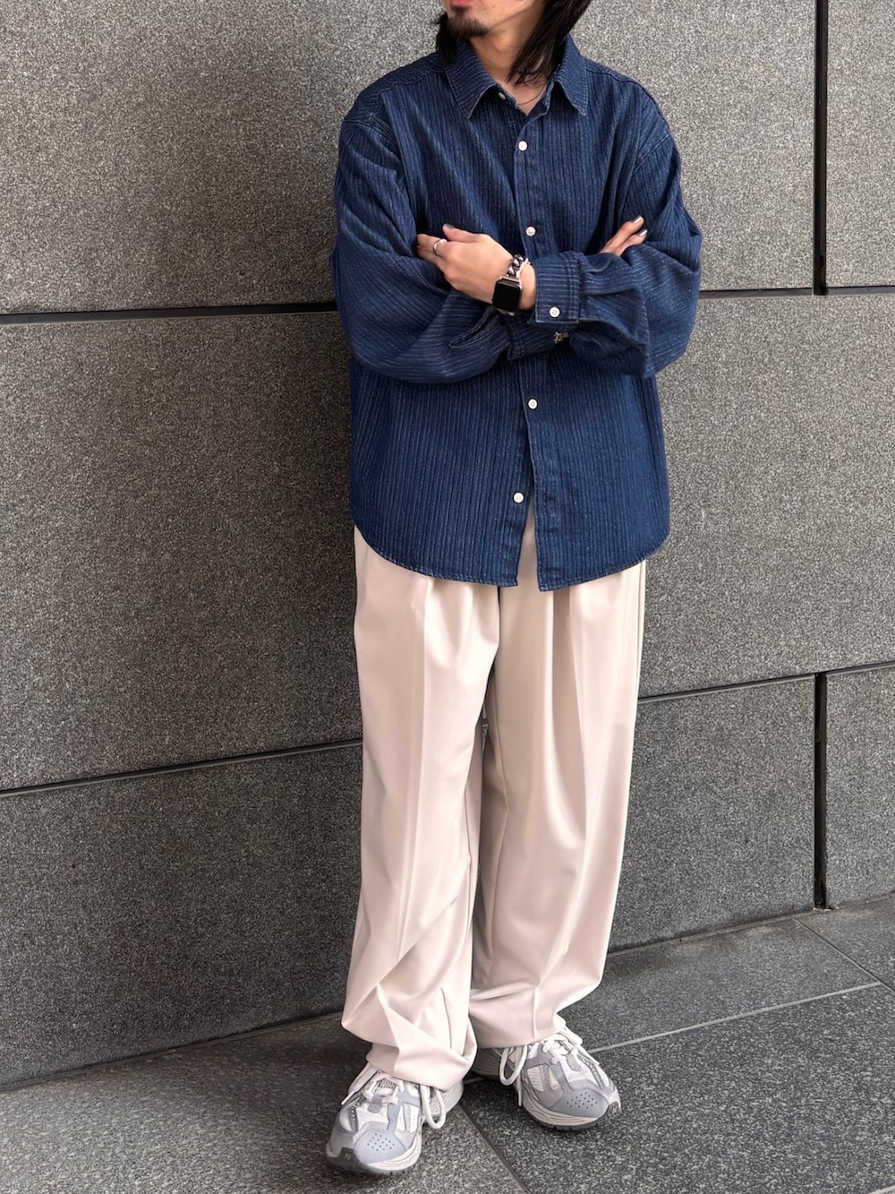 ストライプデニムシャツの雰囲気かっこいいです!