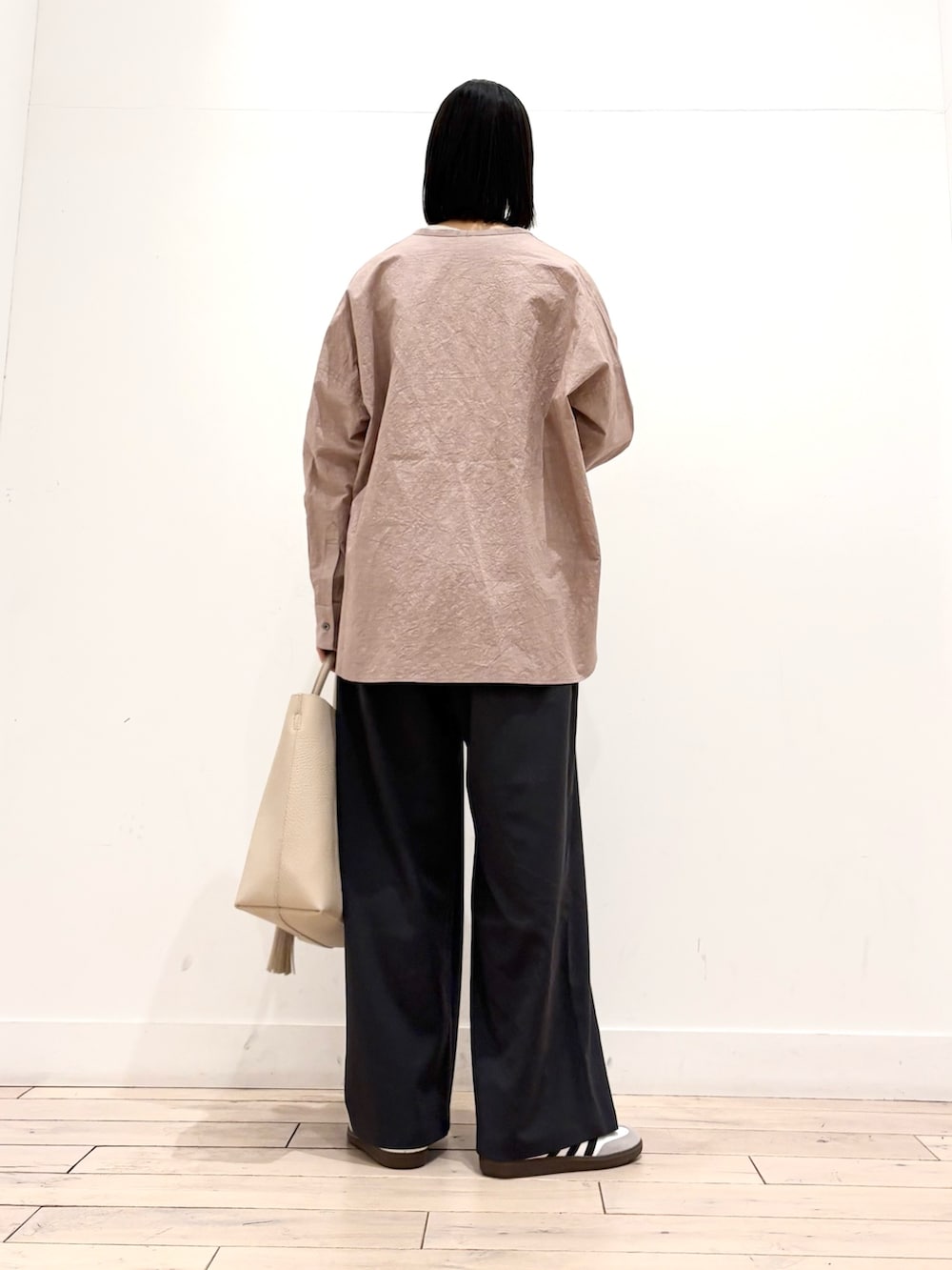 程よくハリがあるコットンリネンを使用しており、ほのかなシワ感が特徴の一枚です👏