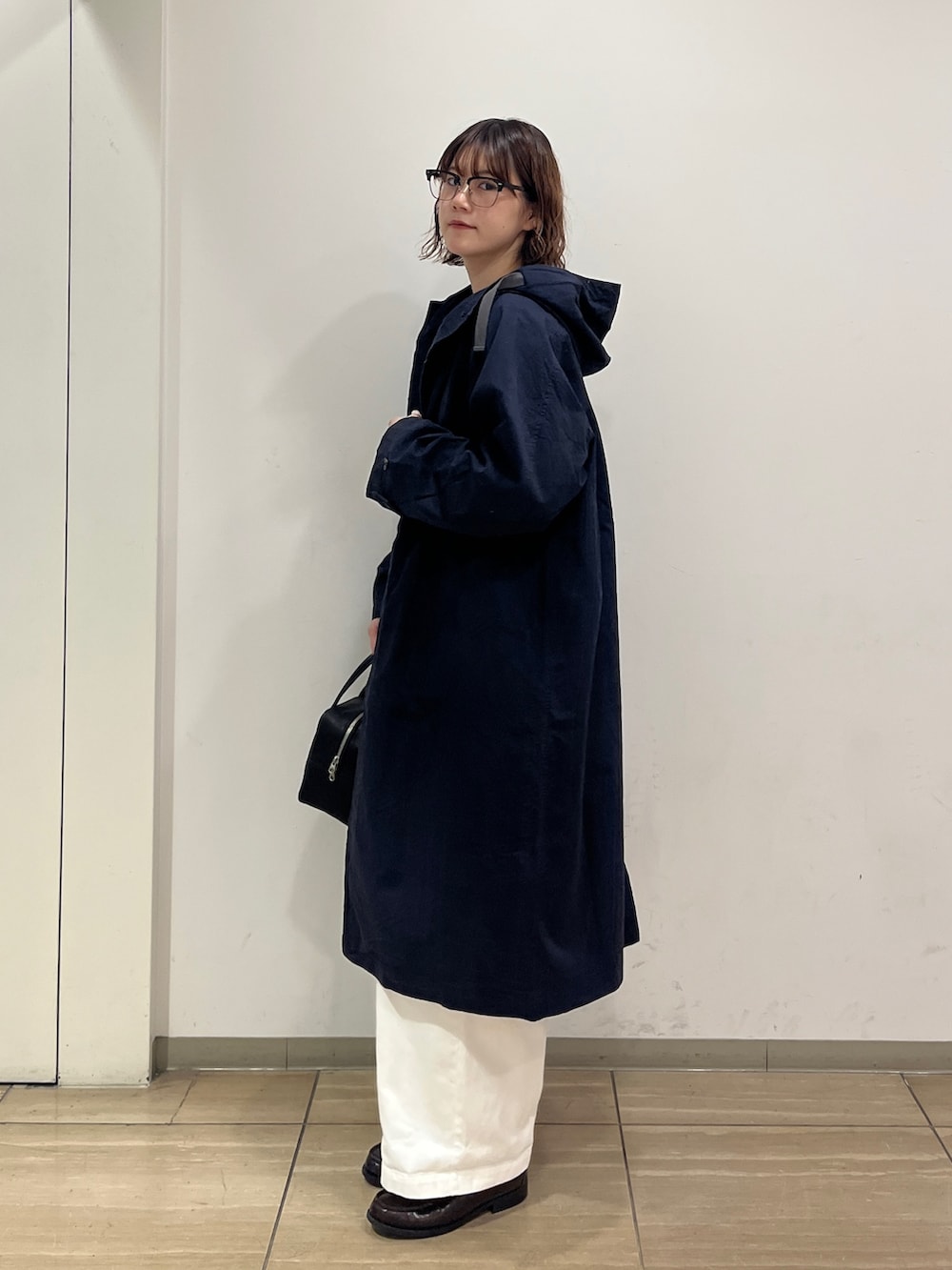 長さしっかりで雰囲気ありますが、フード付きでカジュアルにも合わせやすいです★